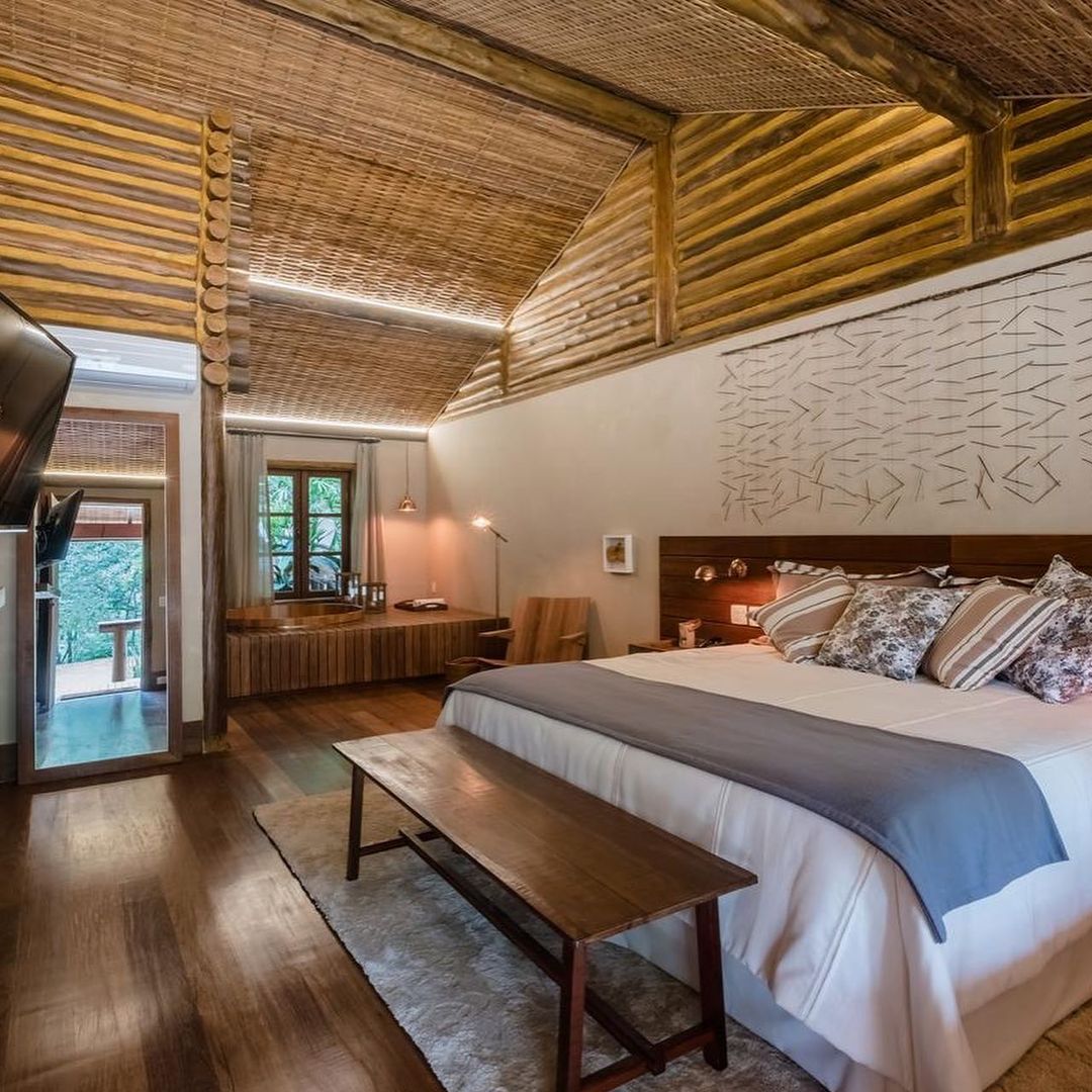 Ar condicionado Secador de cabelo TV a cabo / Smart TV Jacuzzi / Ofurô / Banheira Coberta Frigobar Lareira Máquina de Café Enxoval de Luxo (+ Roupão e Pantufa) Sauna Cozinha Estação de trabalho (mesa e cadeira) Piscina Aquecida ou climatizada Borda Infinita Coberta