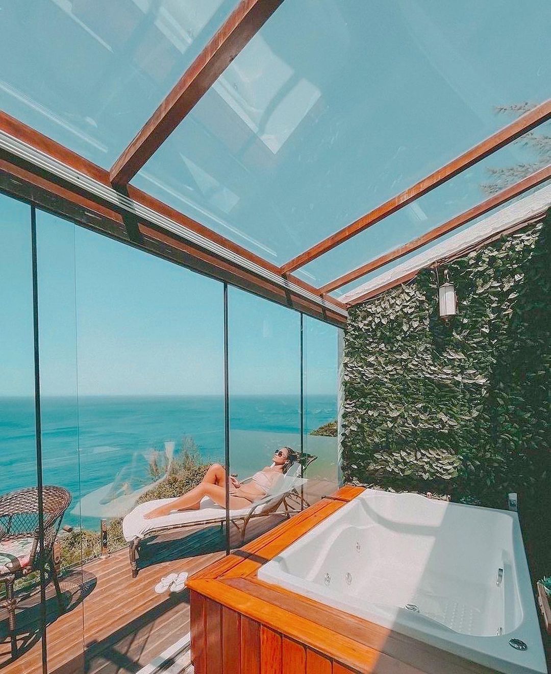 Ar condicionado Secador de cabelo TV a cabo / Smart TV Jacuzzi / Ofurô / Banheira Coberta Frigobar Lareira Máquina de Café Enxoval de Luxo (+ Roupão e Pantufa) Sauna Cozinha Estação de trabalho (mesa e cadeira) Piscina Aquecida ou climatizada Borda Infinita Coberta