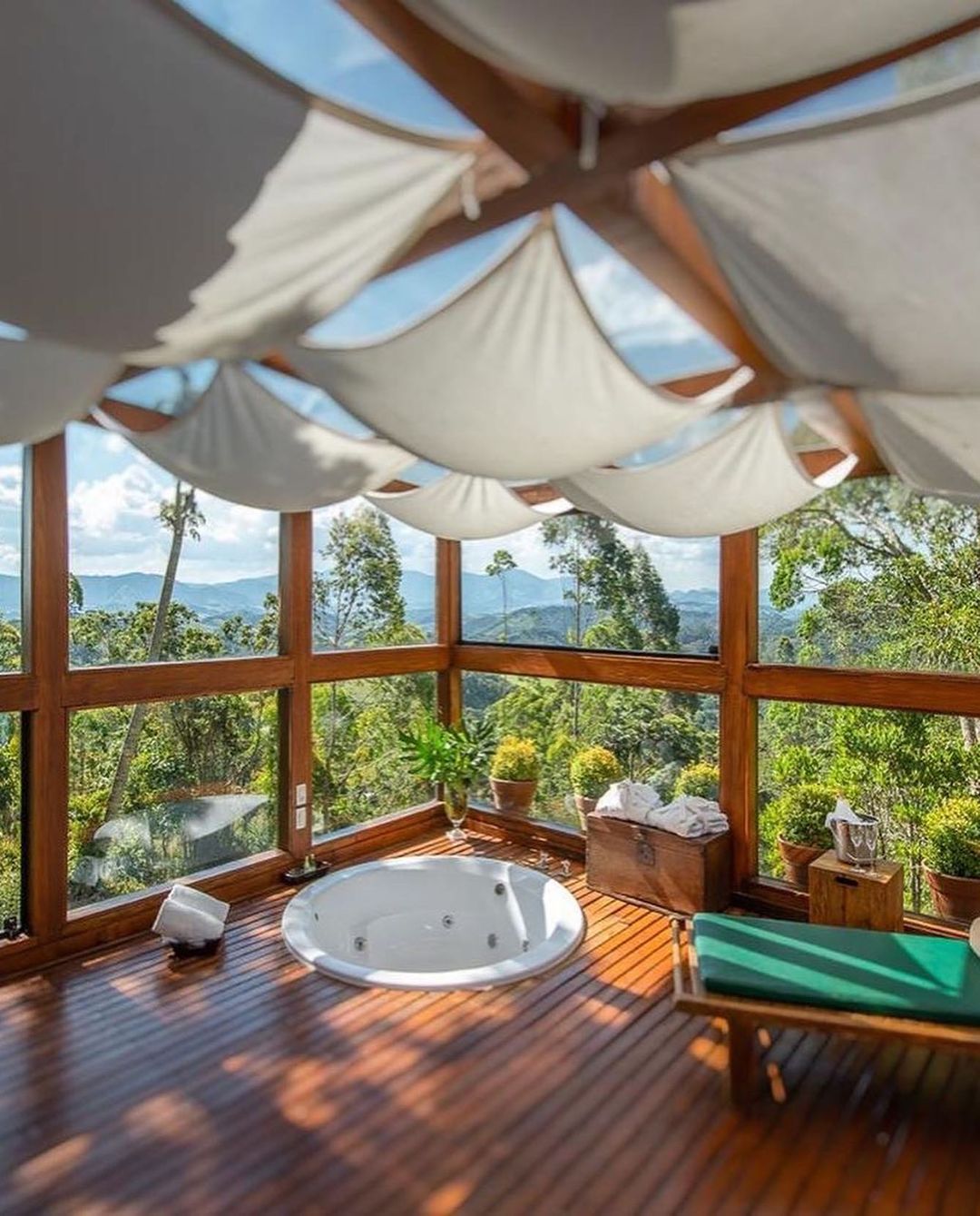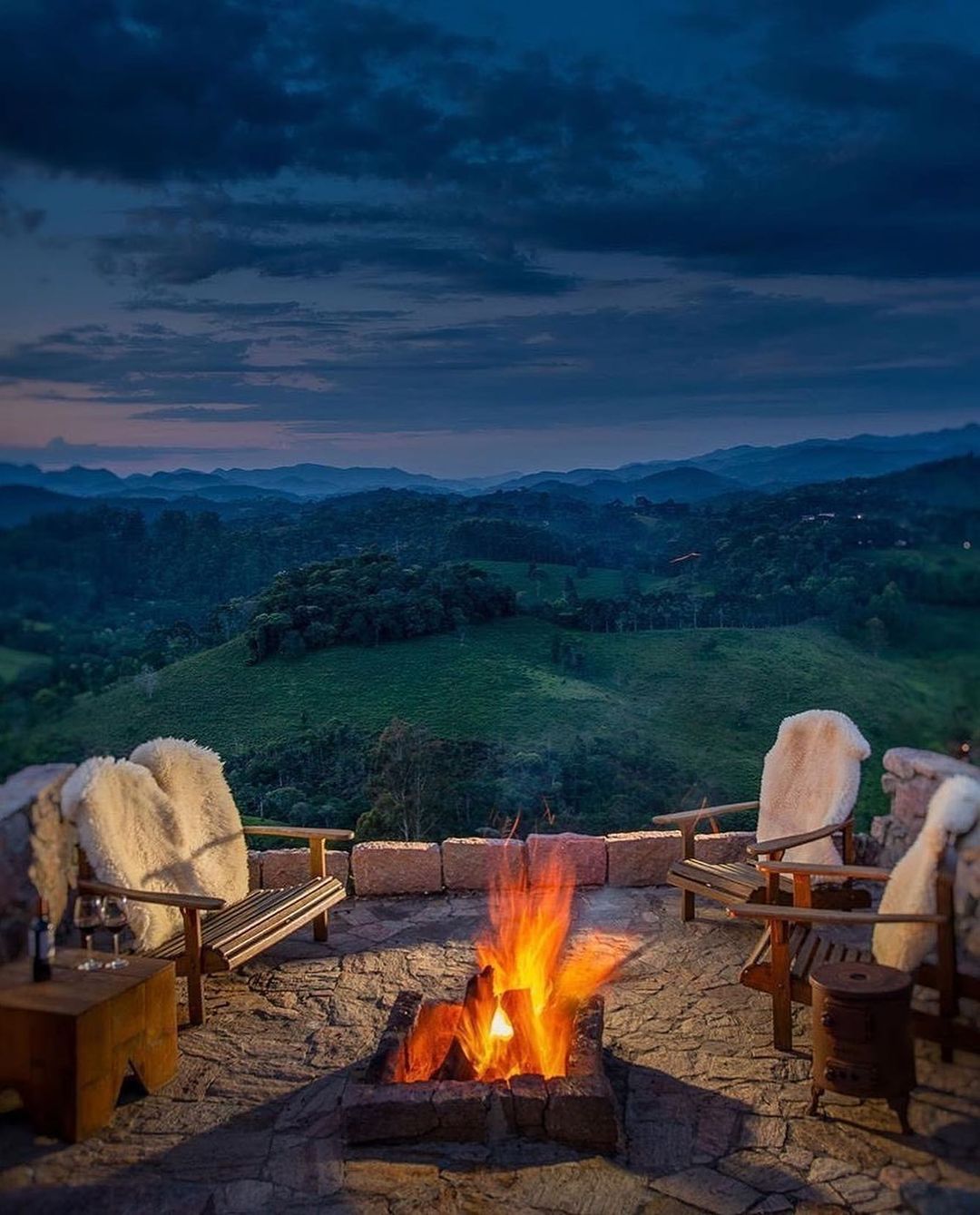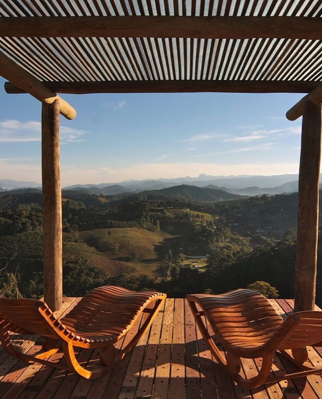 Um lugar mágico, de incrível beleza, onde se sente que se pode tocar nas nuvens. A Pedra do Baú, elegante e imponente no horizonte, dourada pelos contornos da Serra da Mantiqueira, onde o verde da montanha se mistura com o azul do céu. O charme e a natureza harmoniosamente aproveitada tornam o lugar indescritível.