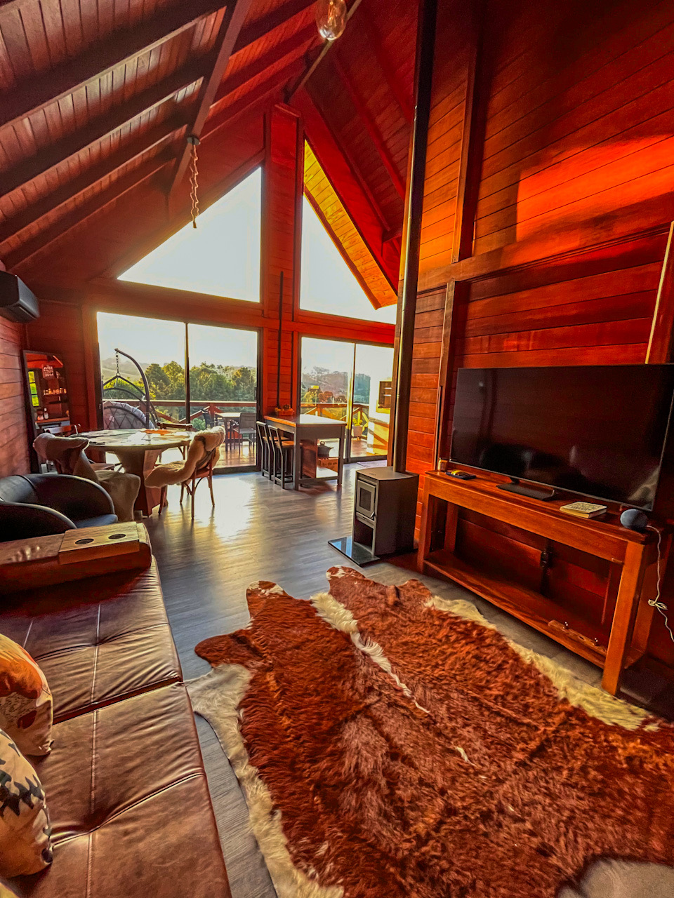 O interior foi pensado para garantir o máximo conforto. Sala de estar com sofá estiloso, TV Smart 55”, sistema de som Alexa e persianas elétricas. A cozinha, totalmente equipada, permite preparar refeições enquanto se aprecia a vista das montanhas. Os quartos oferecem camas Queen de alto padrão, roupas de cama 300 fios, TV Smart e persianas blackout. No banheiro, secador profissional e amenities Granado proporcionam um cuidado especial. Um refúgio ideal para quem busca privacidade, conforto e conexão com a natureza, seja em casal, família ou com pets.