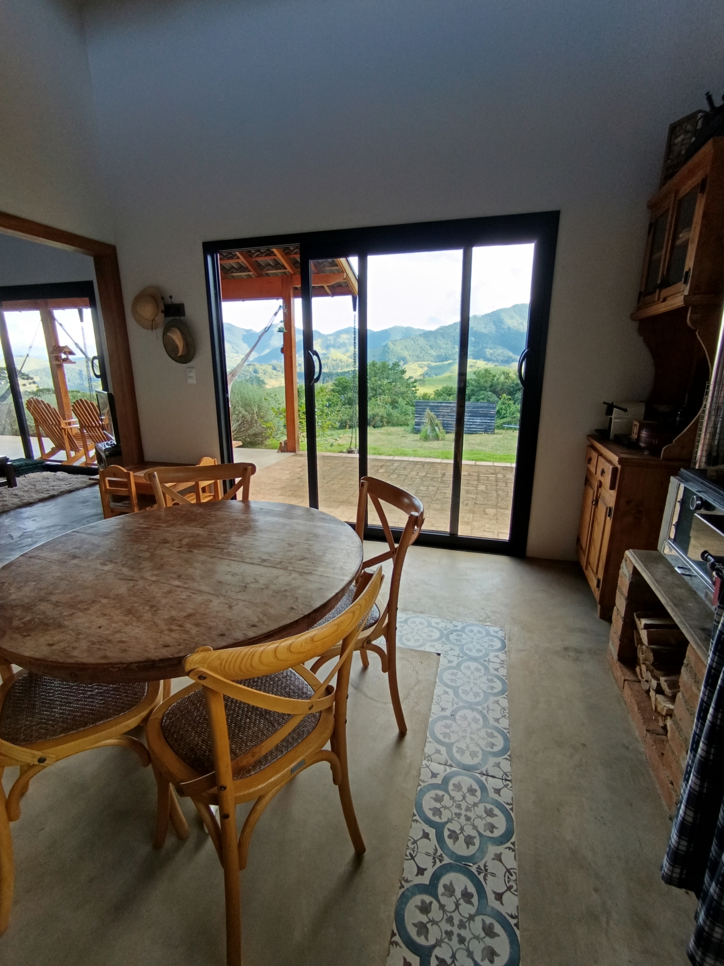 A acomodação permite preparar refeições no forno a lenha, contando também com cooktop e airfryer para maior praticidade. O pomar oferece framboesas, amoras e mirtilos, proporcionando uma experiência ainda mais especial junto à natureza. Além da jacuzzi na suíte principal, há ofurô na área externa, completando a proposta de conforto e bem-estar em cada detalhe da estadia.