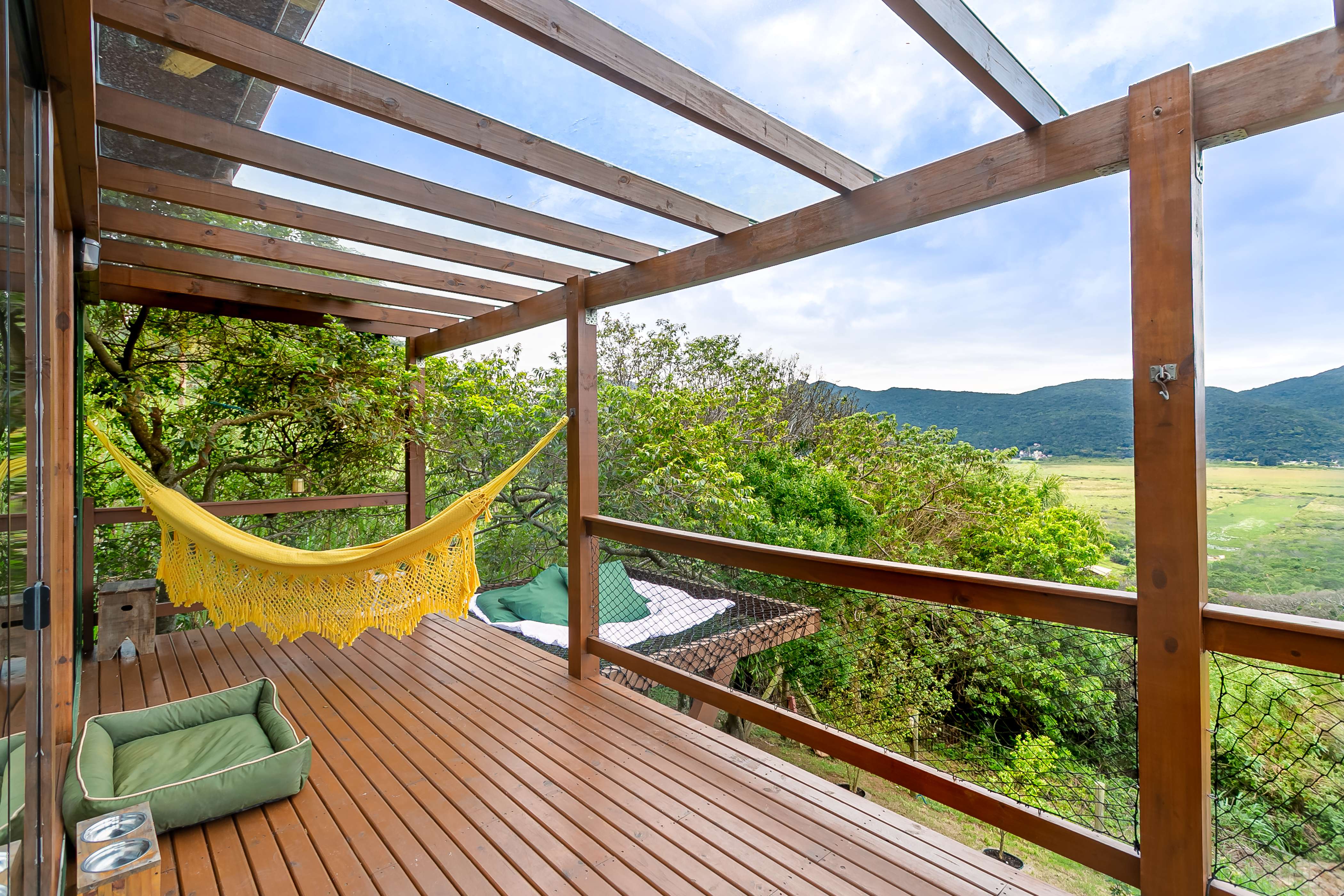 Com uma vista encantadora para a praia do Pântano do Sul e Açores, o Recanto do Ilhéu, que é totalmente privativo, proporciona aos hóspedes dias de descanso em contato com a natureza ou um ótimo ambiente para home office. A casa possui 56m², contendo um quarto no mezanino com uma banheira de hidromassagem e ar condicionado em todos os cômodos. Há espaço para estacionar o carro ao lado da casa, uma piscina de 6m rodeada por um deck, sendo um local excelente para relaxar e apreciar o pôr do sol.