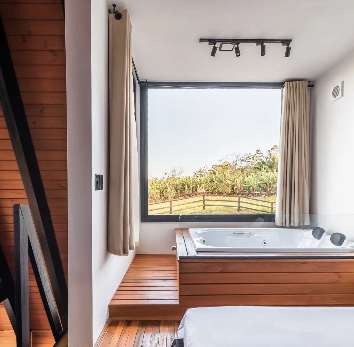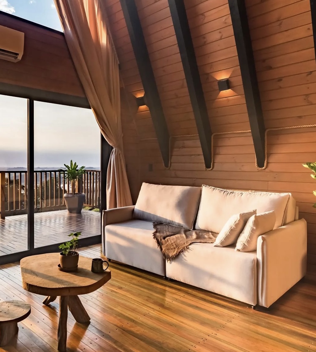 Oferecemos hospedagem em uma cabana muito bem equipada e projetada que contaa com cozinha completa, calefator e banheira de hidromassagem junto ao quarto e localizada no mezanino, além de uma encantadora área externa com fogo de chão e grelha. Todos ambientes do Refúgio proporcionam uma vista incrível do litoral norte do Rio Grande do Sul e do nascer do sol.