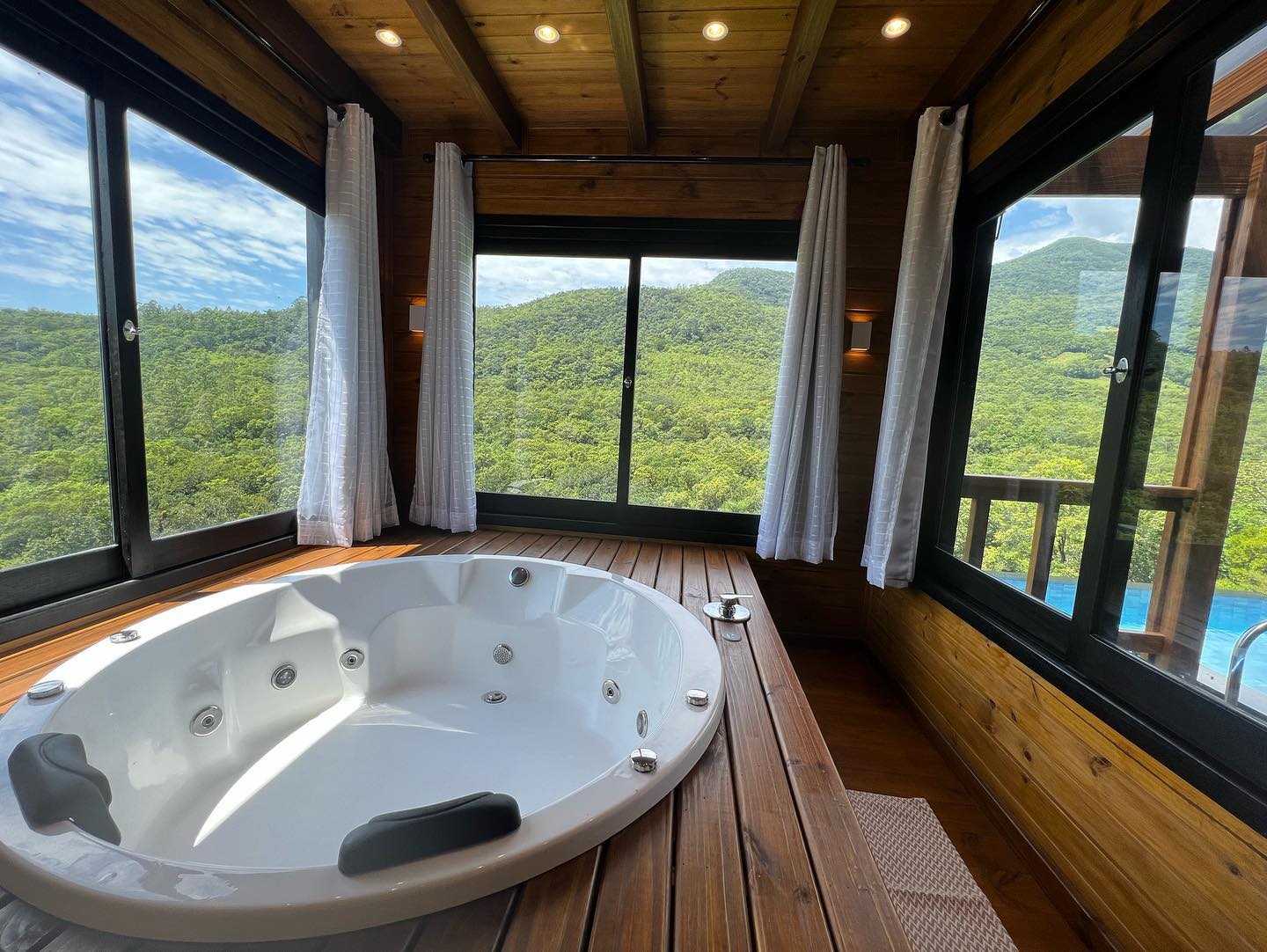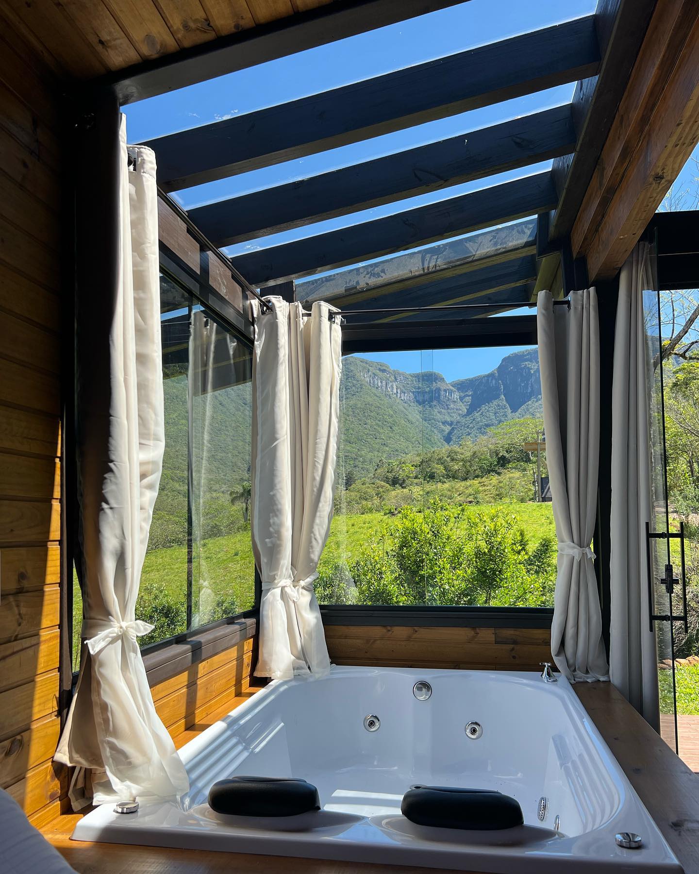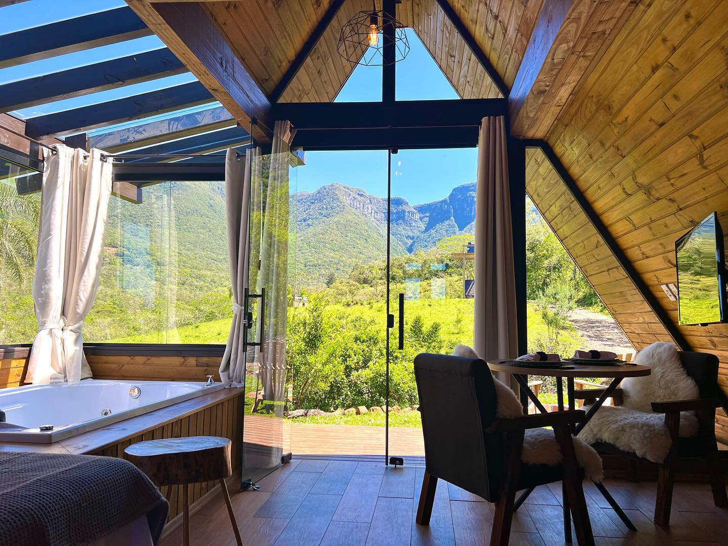 O chalé está localizado em um cenário privilegiado, com vista para o Canyon Índios Coroados e o vale. Isso oferece aos hóspedes a oportunidade de desfrutar de vistas espetaculares da natureza circundante. O destaque do chalé é a piscina de borda infinita aquecida na varanda. Isso permite que os hóspedes relaxem e desfrutem da vista enquanto se refrescam na piscina. Os chalés estão equipados com comodidades modernas, como ar condicionado, uma cozinha completa com utensílios sofisticados para cozinhar, uma lareira e uma Smart TV na sala de estar. Essas comodidades garantem o conforto dos hóspedes. A inclusão de um spa com hidromassagem e cromoterapia oferece aos hóspedes a oportunidade de relaxar e se revitalizar. Além das comodidades mencionadas, o Refúgio do Canyon Coroados oferece a possibilidade de experiências personalizadas, como café da manhã, Pic-Nic ou massagem. Isso adiciona um toque especial à estadia e permite que os hóspedes escolham serviços adicionais de acordo com suas preferências.