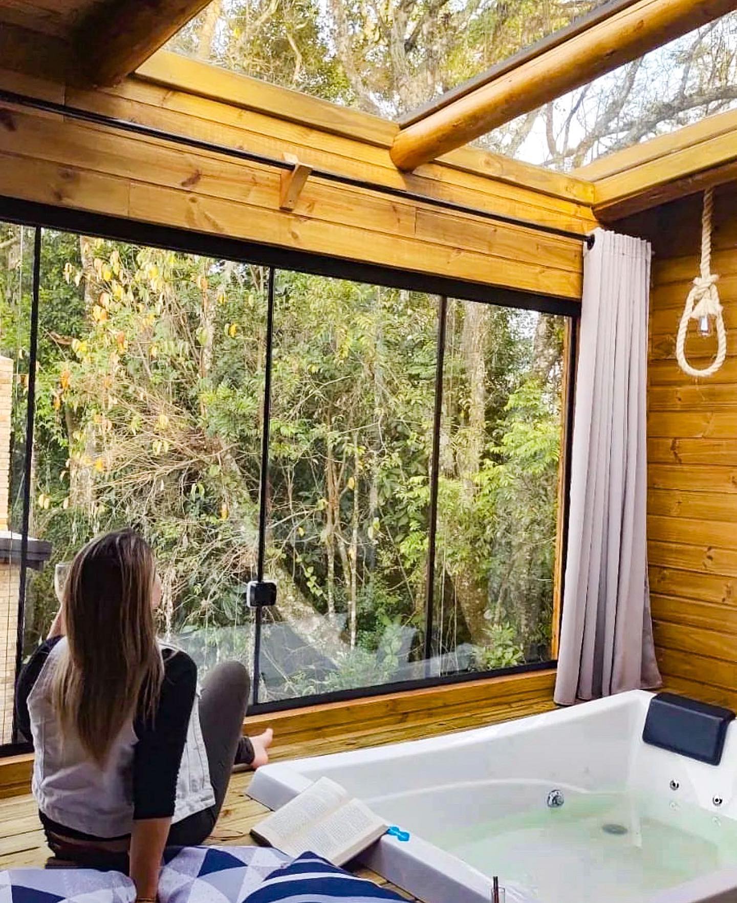 Refúgio do equilíbrio dispõe apenas de uma cabana totalmente privativa para casais. Um local em meio à natureza que foi pensado para que você possa se desconectar da rotina e criar boas memórias em um local que combina conforto e tranquilidade.