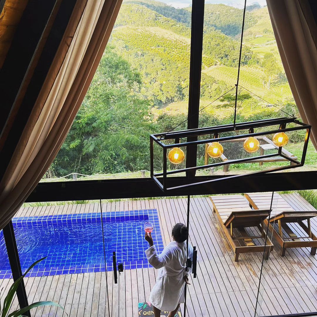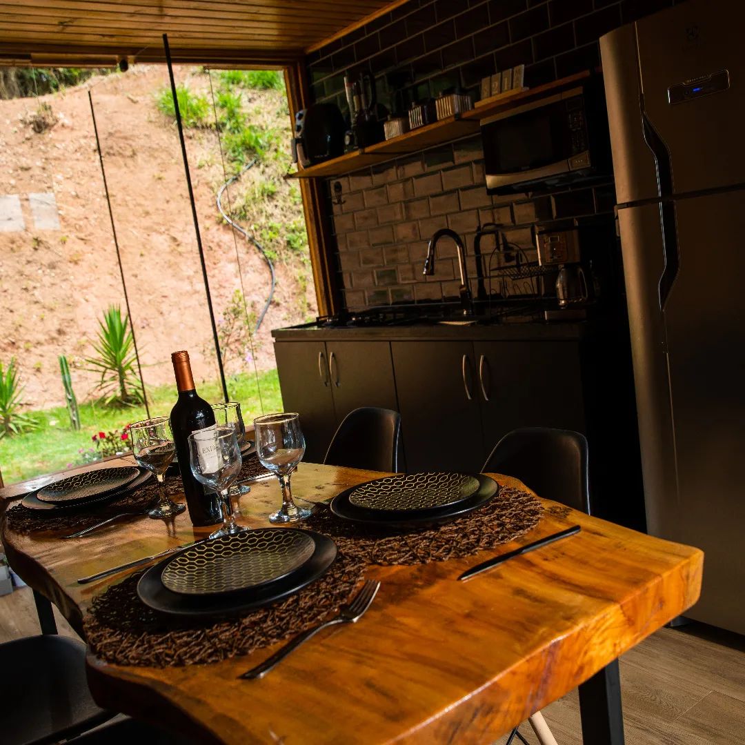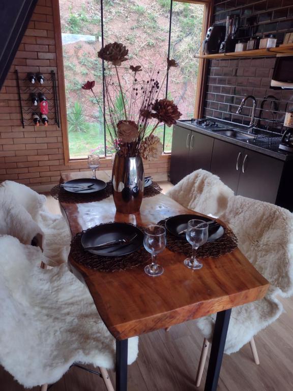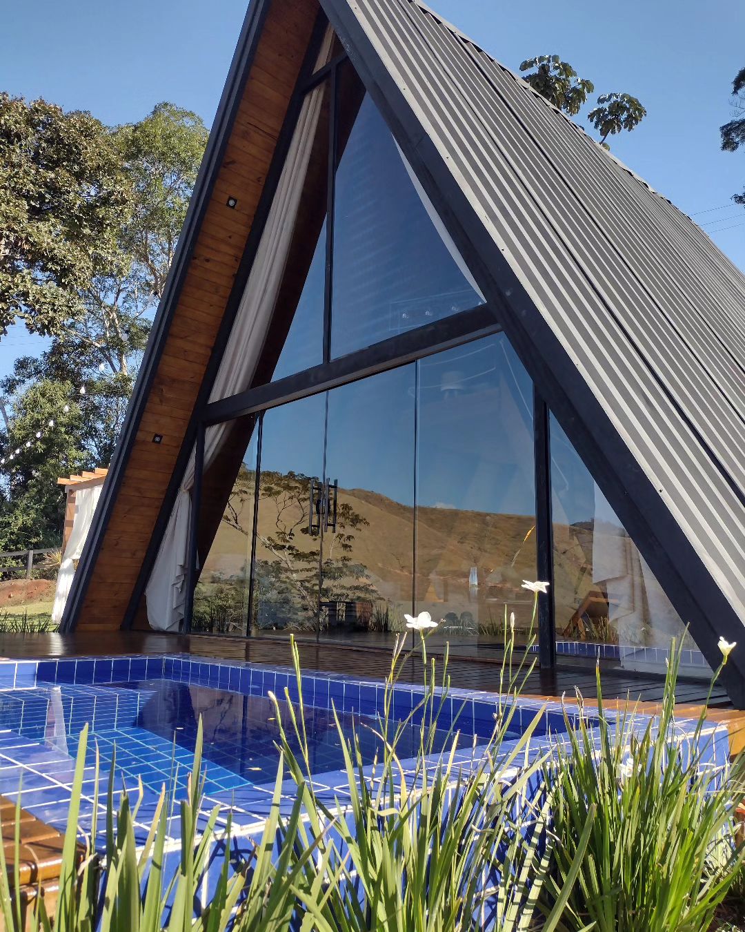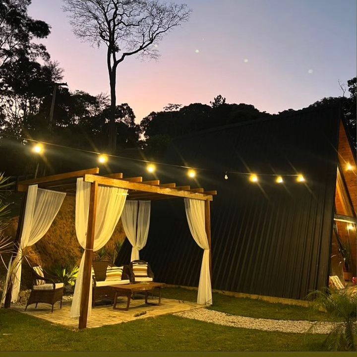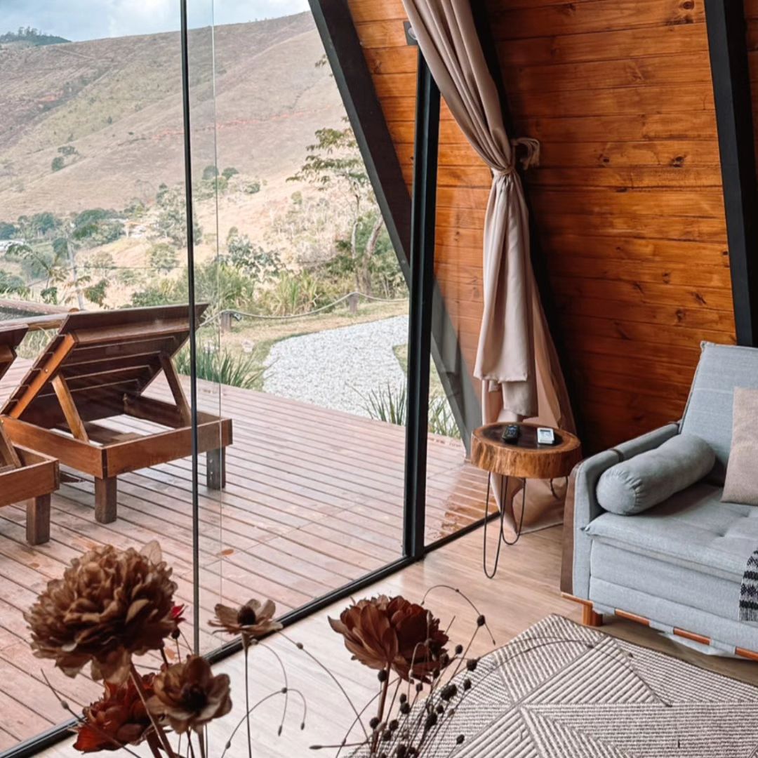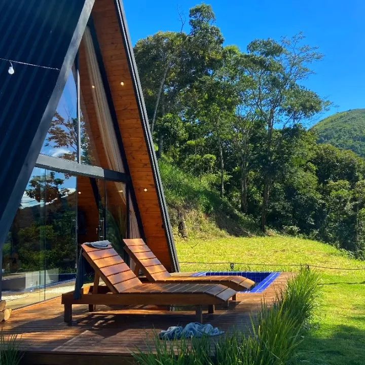 Esqueça de suas preocupações neste lugar espaçoso e tranquilo. Uma linda Cabana no estilo A-frame na região de Teresópolis - RJ, com amplo espaço para ser curtido, possui lareira externa, lareira interna, pergolado para descanso e apreciação das montanhas ao redor do chalé, piscina e hidromassagem, cozinha completa para o conforto dos hóspedes. O Refúgio dos Alpes Cabana está localizado em meio às montanhas de Teresópolis, com uma vista exuberante, sendo um verdadeiro refúgio. O espaço conta com uma cama queen size, sofá cama, lençóis, toalhas, roupões, cozinha completa com geladeira, micro-ondas, liquidificador, Air fryer, cafeteira, utensílios completos para cozinha, banheira de hidromassagem, lareira ecológica, ar condicionado quente e frio, TV com diversos aplicativos, mesa de jantar, adega, piscina privativa. A área externa possui churrasqueira, pergolado, lareira a lenha e espreguiçadeiras. Espaço único com conforto em meio à natureza de Teresópolis.