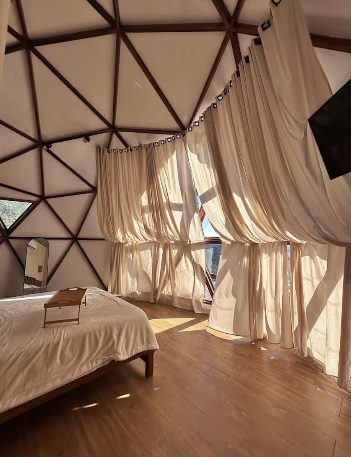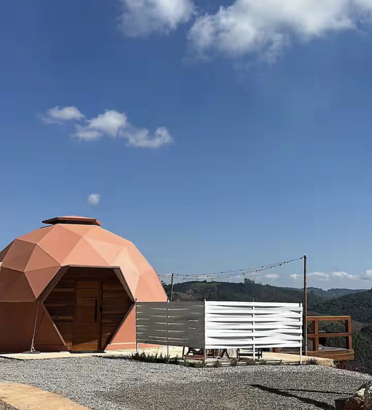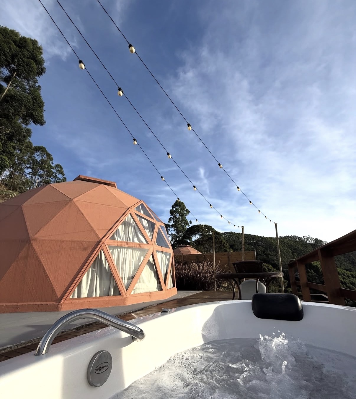 Os domos Lua, Gio e Ben foram projetados para garantir conforto, privacidade e imersão na natureza, combinando design contemporâneo com atmosfera acolhedora. A proposta valoriza a contemplação do horizonte, o silêncio das montanhas e a sensação de exclusividade, entregando uma experiência singular para quem busca dias de descanso com cenário marcante e estrutura cuidadosamente planejada.