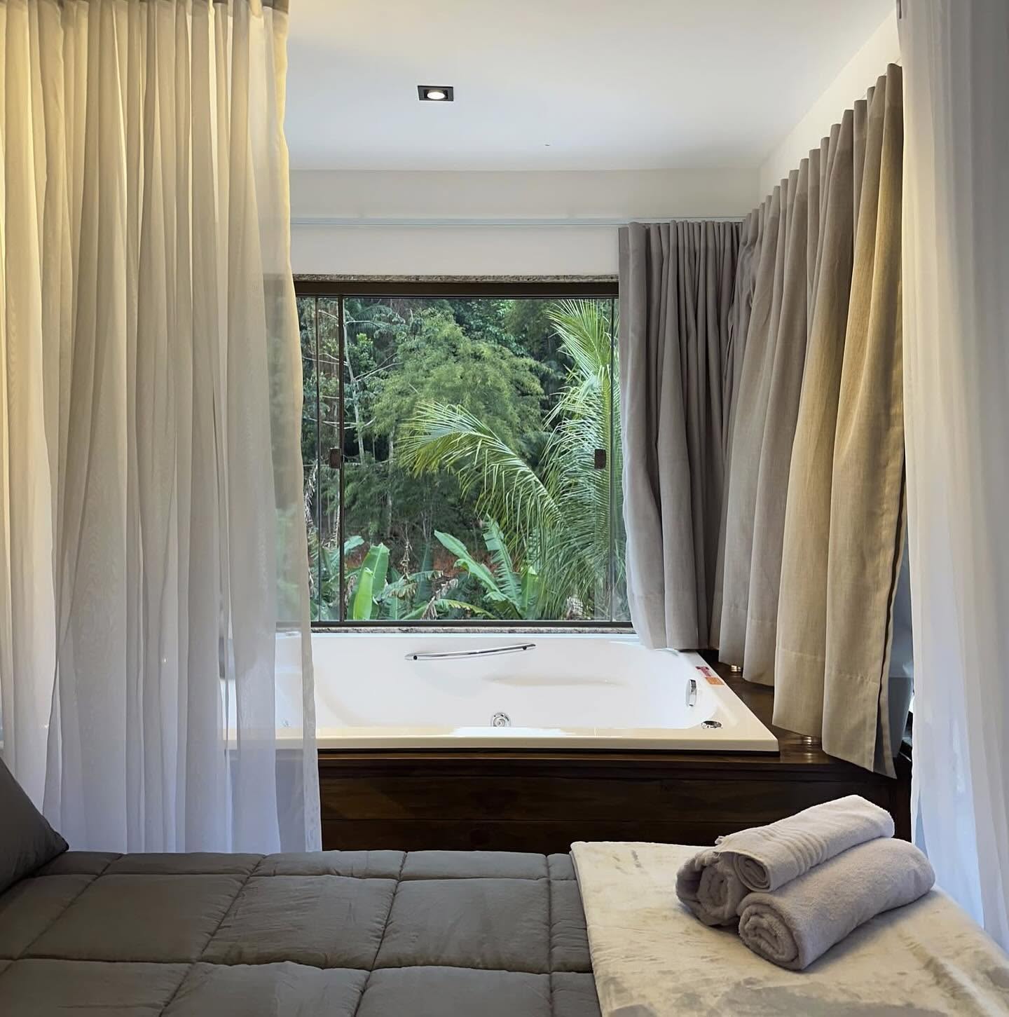 Ar condicionado Secador de cabelo TV a cabo / Smart TV Jacuzzi / Ofurô / Banheira Coberta Frigobar Lareira Máquina de Café Enxoval de Luxo (+ Roupão e Pantufa) Sauna Cozinha Estação de trabalho (mesa e cadeira) Piscina Aquecida ou climatizada Borda Infinita Coberta