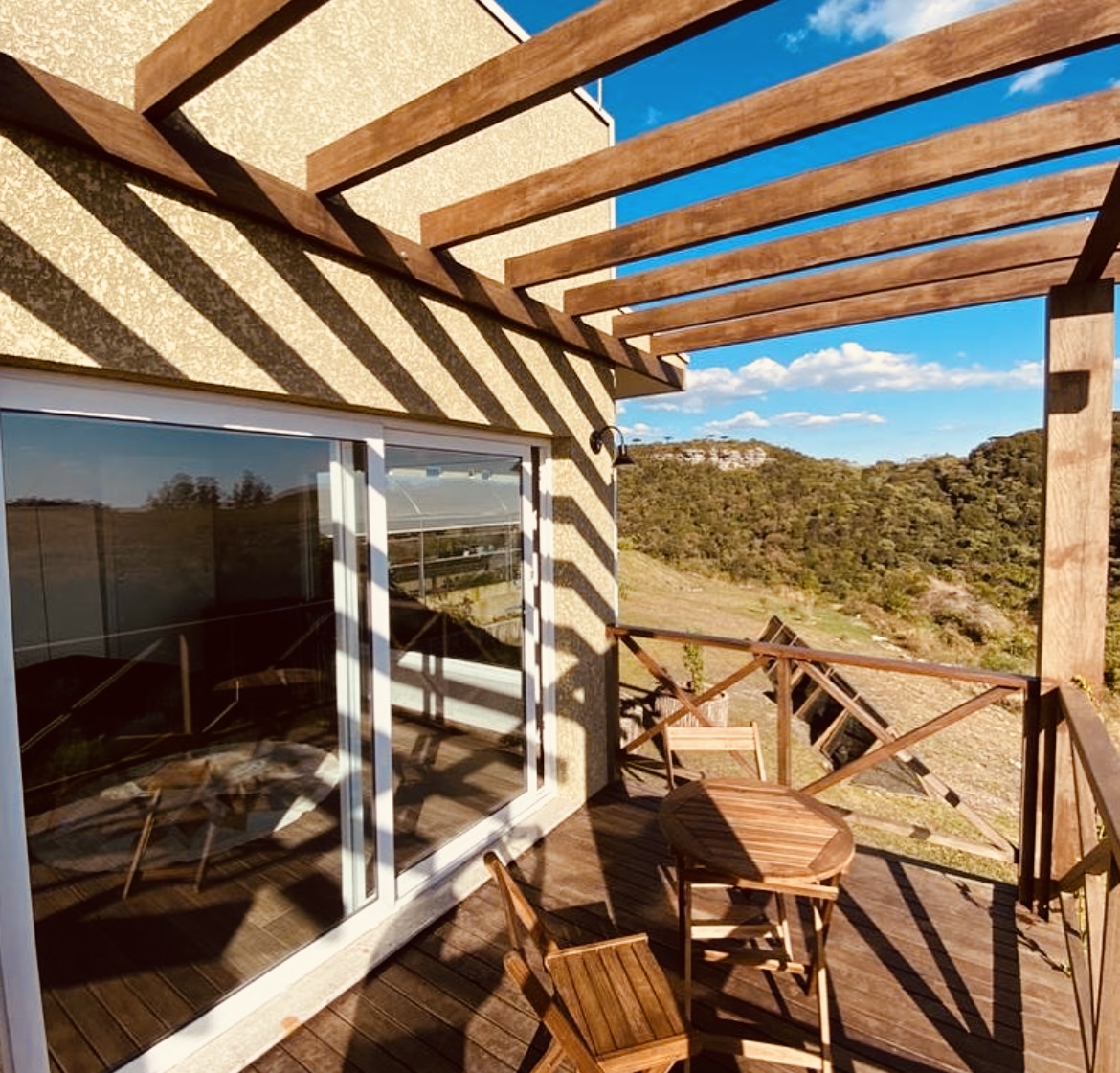 A casa foi projetada com muito carinho, com janelas de vidro duplo, paredes isoladas com lã de vidro e splits para aquecimento, além de água quente em todas as torneiras. Para relaxar, o espaço conta com um ofurô individual, perfeito para um momento de descanso ou até para as crianças se divertirem em uma piscininha interna.