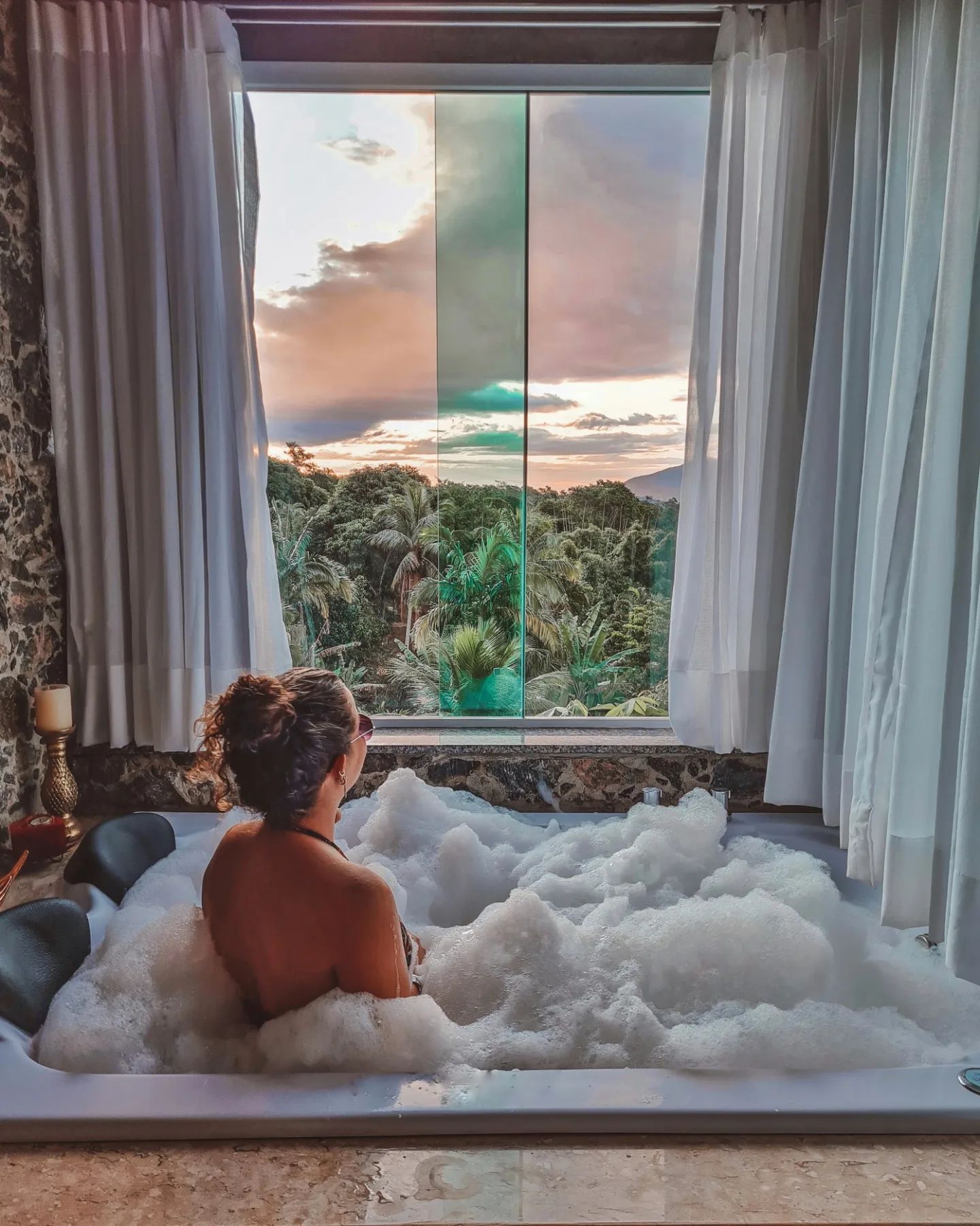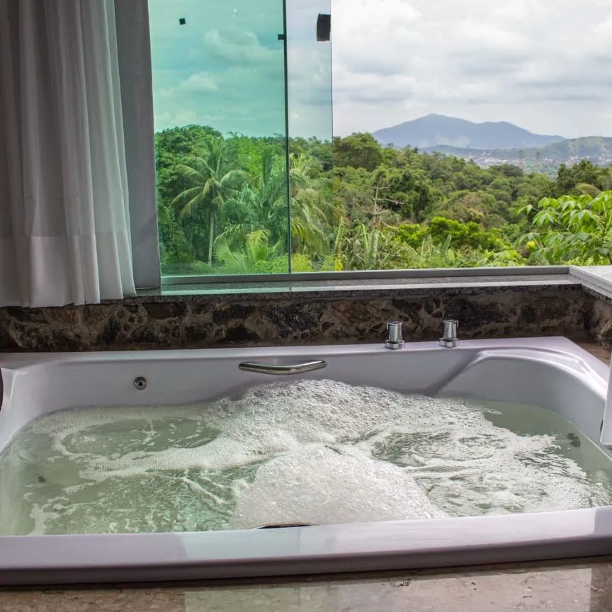 Ar condicionado Secador de cabelo TV a cabo / Smart TV Jacuzzi / Ofurô / Banheira Coberta Frigobar Lareira Máquina de Café Enxoval de Luxo (+ Roupão e Pantufa) Sauna Cozinha Estação de trabalho (mesa e cadeira) Piscina Aquecida ou climatizada Borda Infinita Coberta