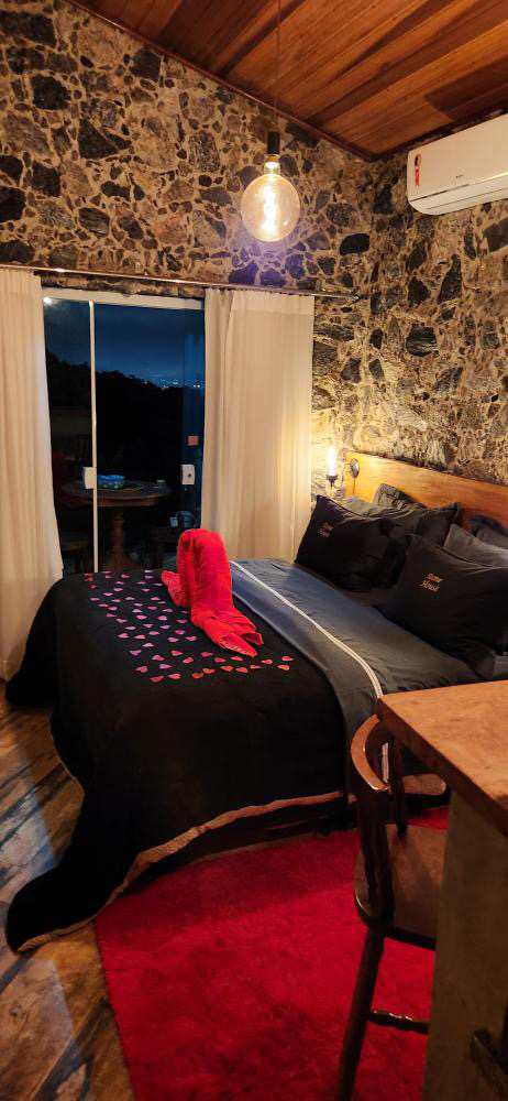 Chalé compacto mobiliado temático romântico com uma excelente hidromassagem e vista privilegiada. Local de paz e amor! Noite de núpcias, aniversário de casamento ou simplesmente sair da rotina!