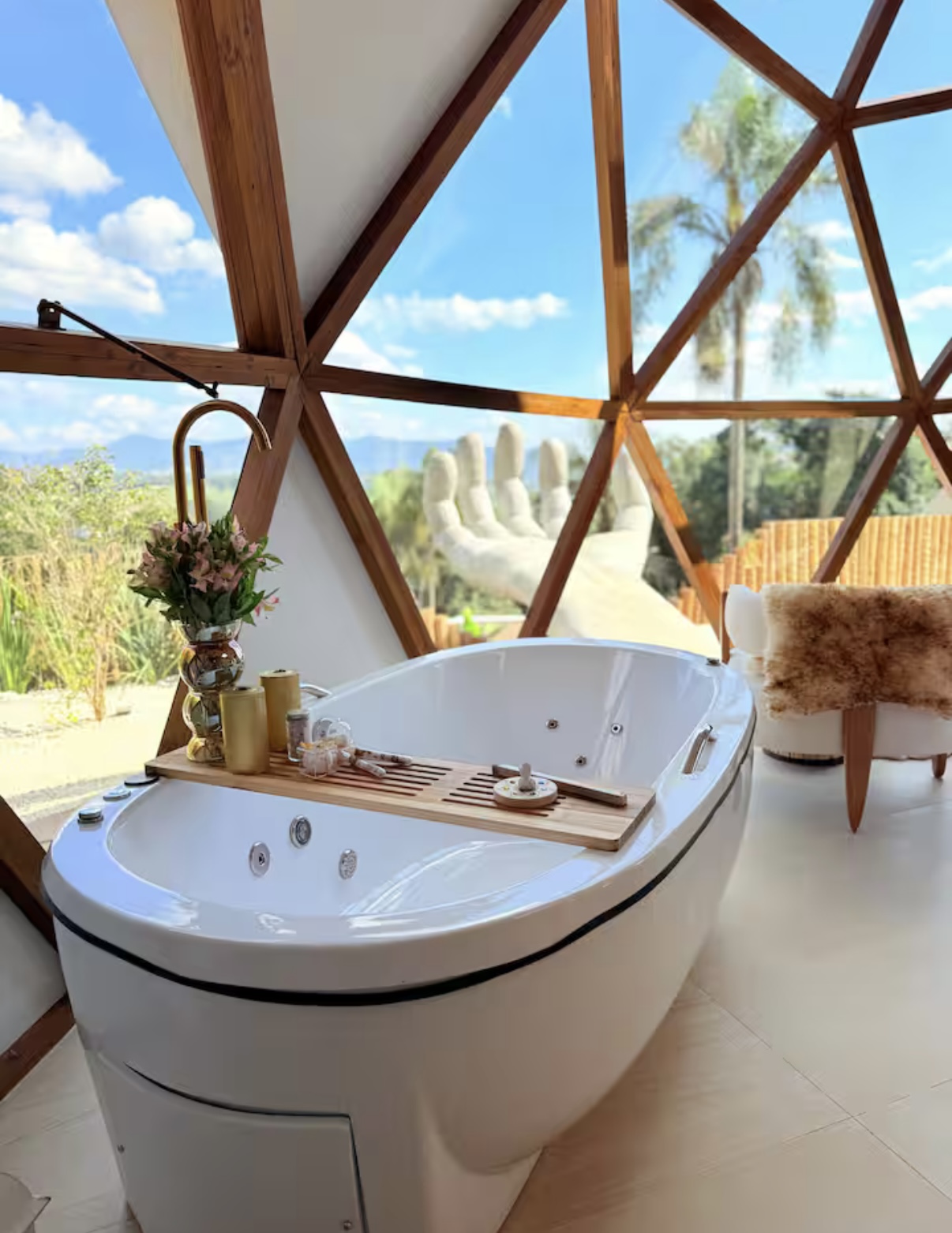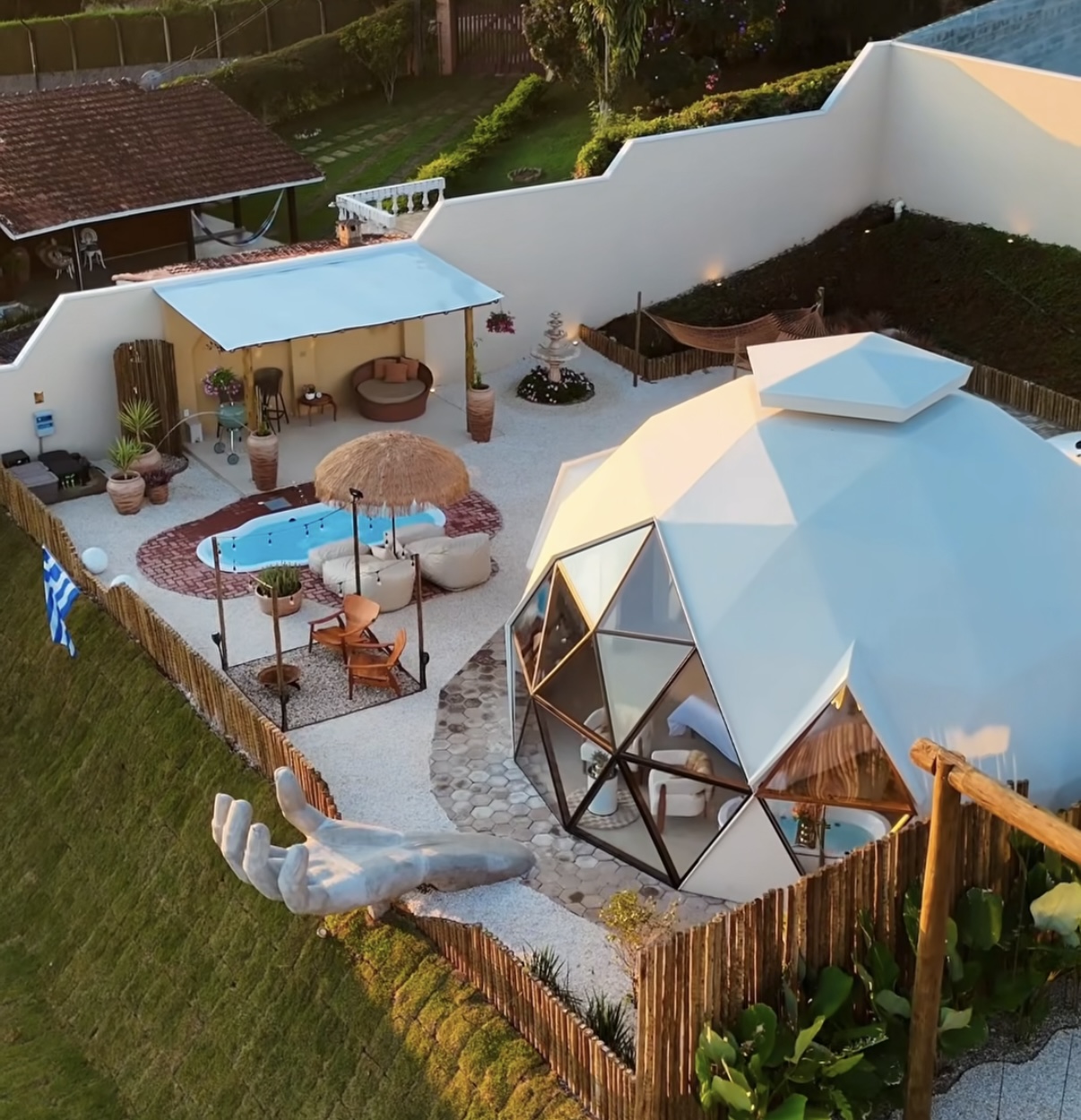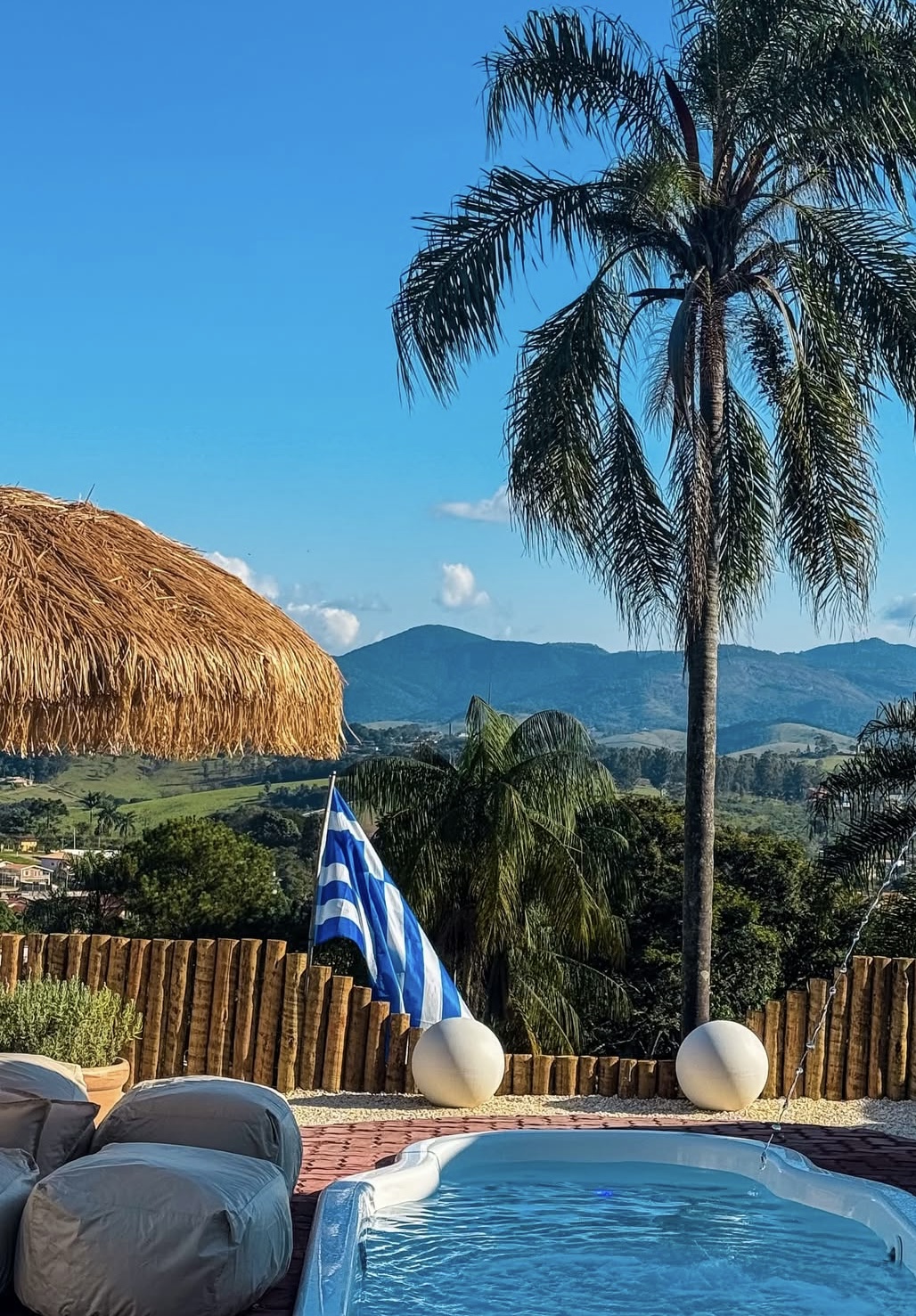 O TD Cabanas é um Airbnb temático com 2 cabanas, sendo o Greek Dome um Domo Geodésico inspirado na Grécia, com decoração cinematográfica, que parece ter saído direto das ilhas gregas. Um domo branco com vista para Pedra Grande de Atibaia, piscina aquecida, redário, fogo de chão, churrasqueira e uma mão de Deus gigante para ver o pôr do sol!