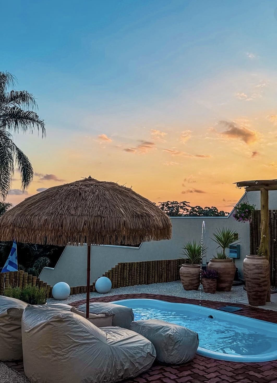 E ainda tem cesta de café da manhã incluso (a partir de 2 diárias), que pode ser servido na piscina com a bandeja flutuante ou dentro do chalé.