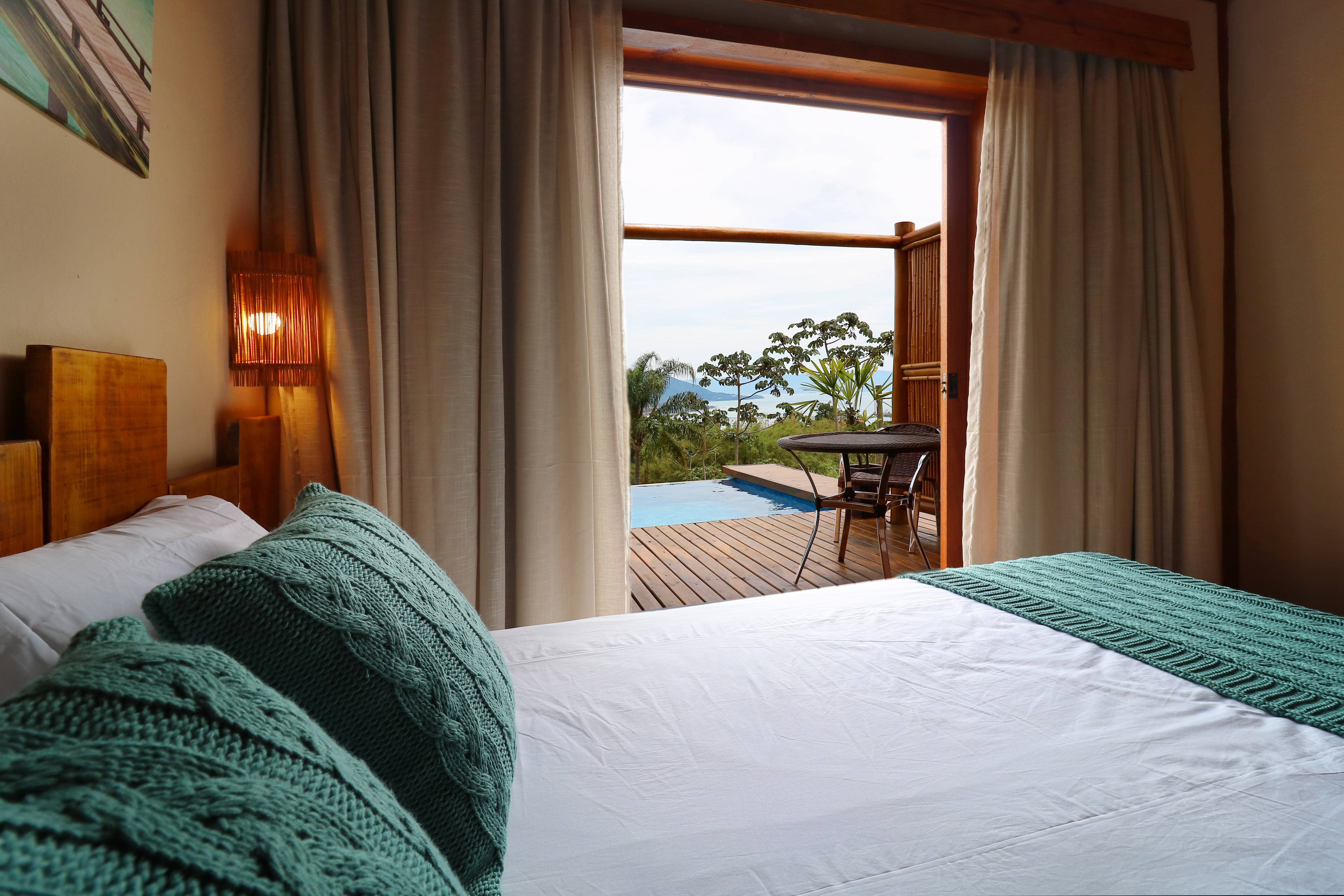 Com varanda privativa, mesa, espreguiçadeira e uma piscina de borda infinita com acesso individual, os bangalôs oferecem uma experiência única. A vista para o mar e o canal de Ilhabela cria um cenário perfeito para relaxar e admirar a paisagem.