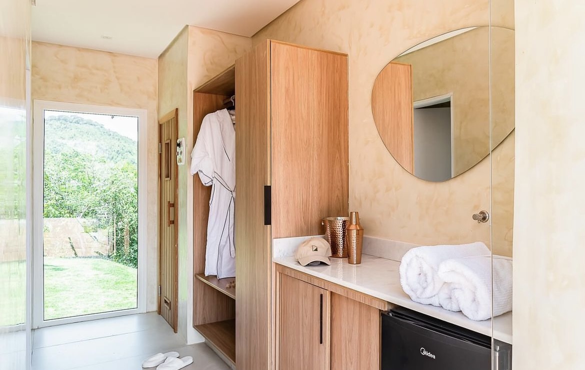 Cada villa é equipada para proporcionar o máximo conforto. Relaxe na piscina aquecida ou desfrute da sauna, enquanto absorve a serenidade e a beleza natural deste refúgio encantador.