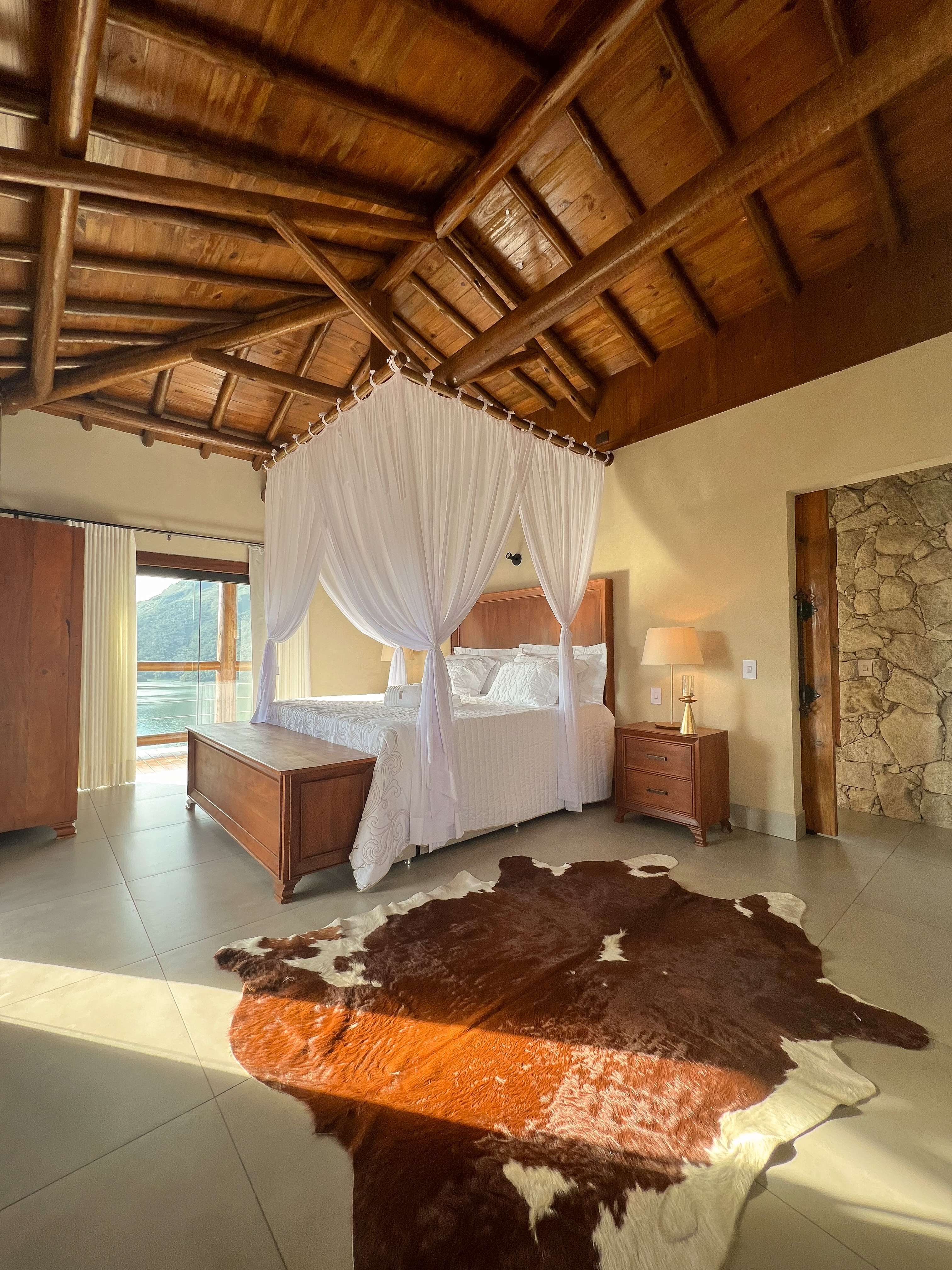 Localizado no distrito de Santa Rita de Ouro Preto, à beira da represa do Tabuão. Com dois banheiros, um deles equipado com uma hidromassagem. Piscina privativa, varanda com vista para o lago e lareira. Cozinha equipada com cooktop, geladeira, microondas, airfryer, máquina de café e utensílios completos, permite a preparação de deliciosas refeições. Por favor, note que nenhuma refeição está inclusa na diária.