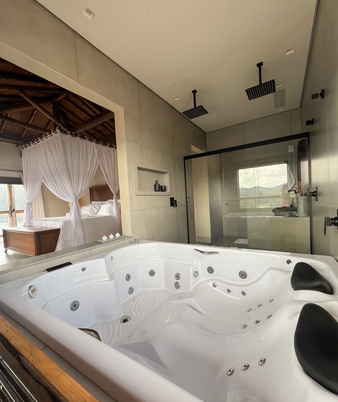 Ar condicionado Secador de cabelo TV a cabo / Smart TV Jacuzzi / Ofurô / Banheira Coberta Frigobar Lareira Máquina de Café Enxoval de Luxo (+ Roupão e Pantufa) Sauna Cozinha Estação de trabalho (mesa e cadeira) Piscina Aquecida ou climatizada Borda Infinita Coberta