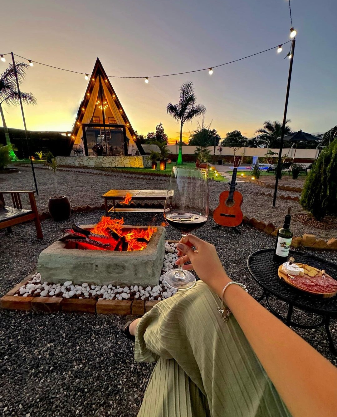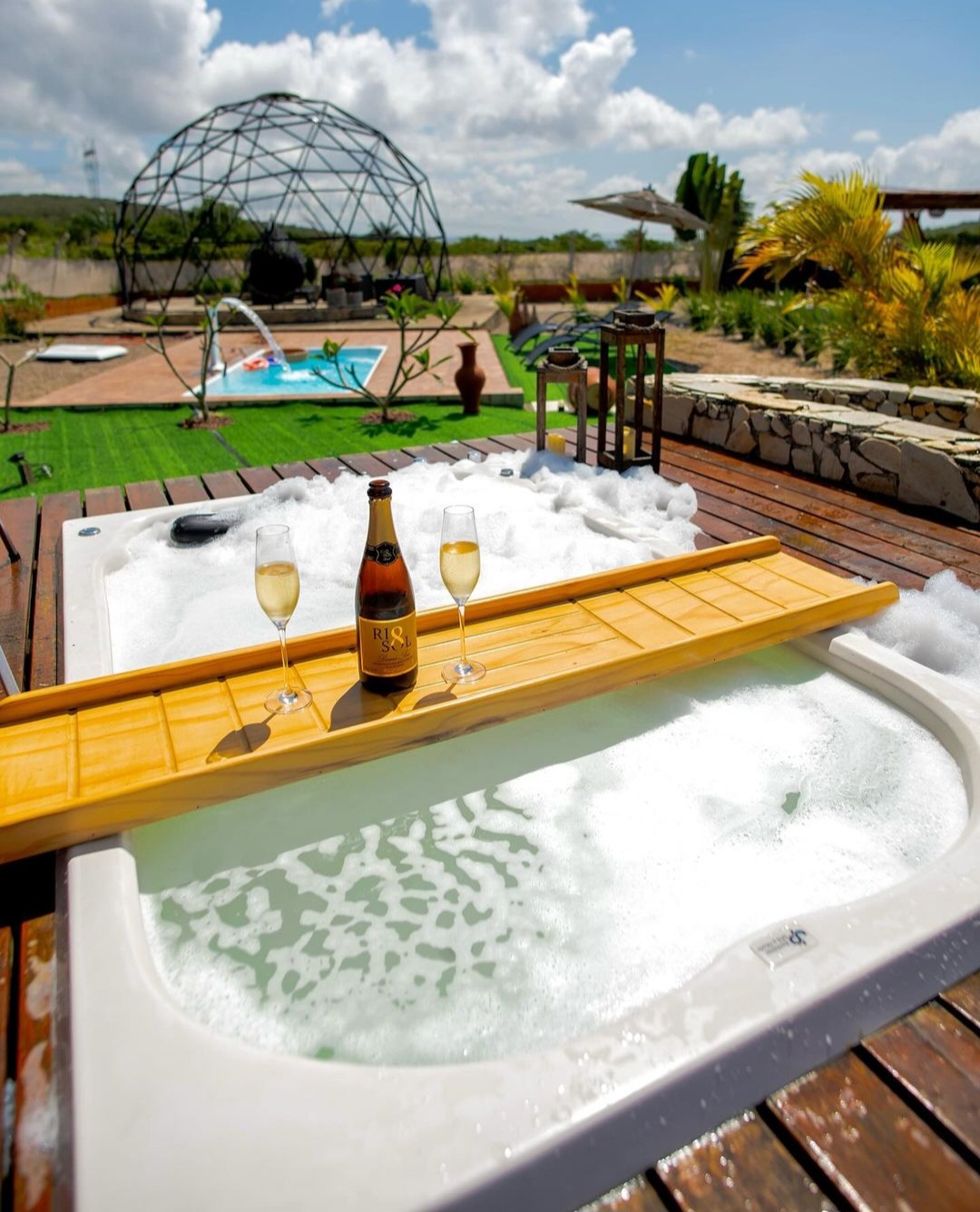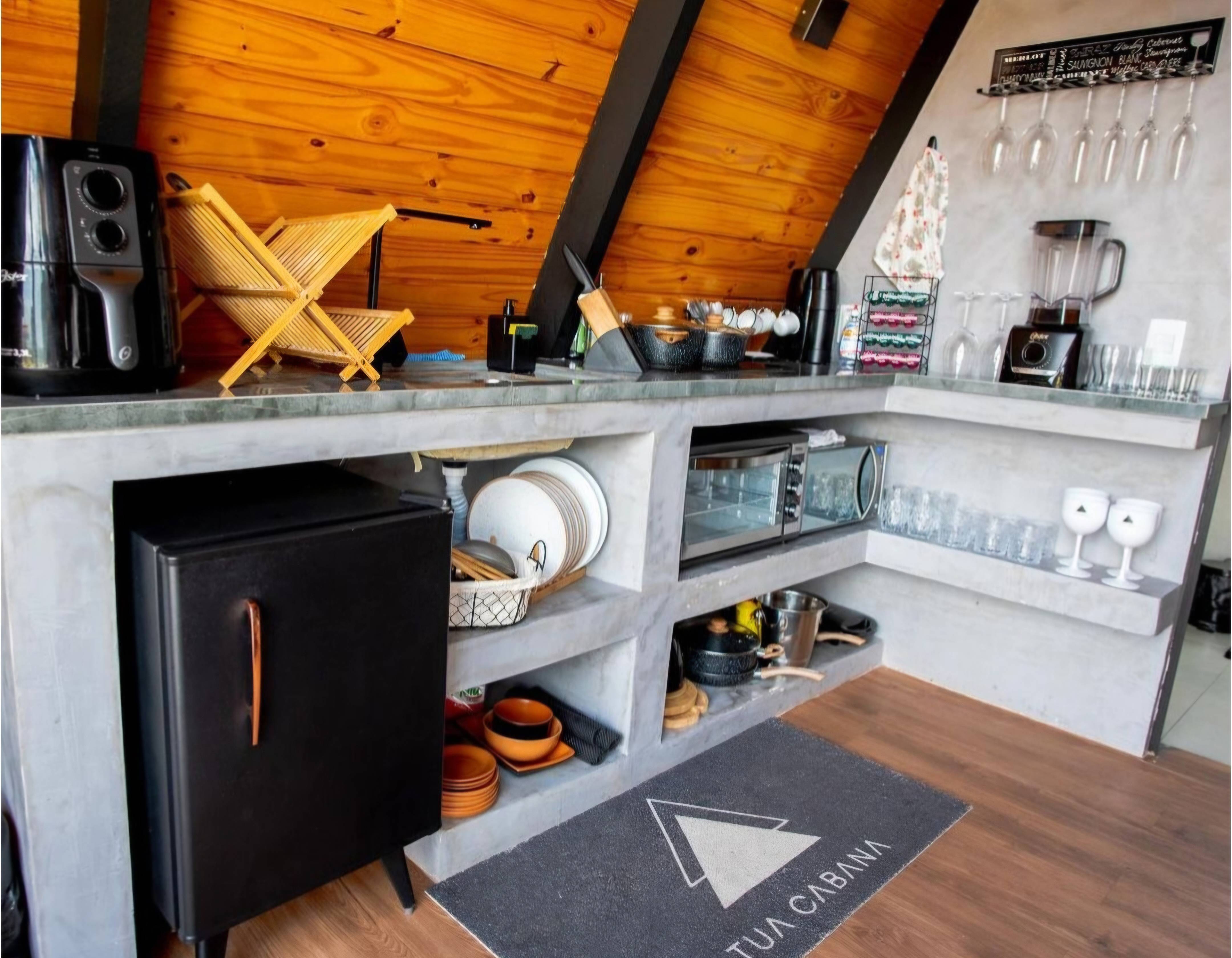 O local oferece uma experiência completa de lazer e conforto, com hidromassagem aquecida, piscina, lareira e área gourmet equipada com churrasqueira e utensílios necessários. Para momentos de descanso, um lounge (domo) com sofás e poltronas pingo, redário e playground estão disponíveis. A cozinha é totalmente equipada, e a sala de estar conta com mezanino, cama queen, ar-condicionado e TV 4K de 50” com canais, filmes e séries liberados, além de Alexa e caixa de som Bluetooth. A estrutura também conta com Wi-Fi em todas as áreas e água quente em todos os pontos. Para conveniência, há estação de carregamento para carros elétricos.