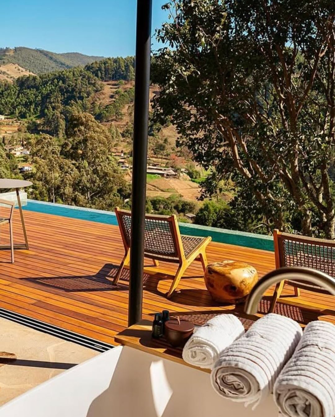Aninhado nas montanhas de Gonçalves, no coração da Serra da Mantiqueira, o Tuffi Residences é um refúgio de charme, conforto e natureza para quem busca momentos a dois inesquecíveis. A apenas 9 minutos do portal da cidade e cercado pelos sons suaves da cachoeira Sete Quedas, o chalé encanta com sua arquitetura sustentável, construída em harmonia com o ambiente e respeitando cada detalhe da natureza ao redor.
