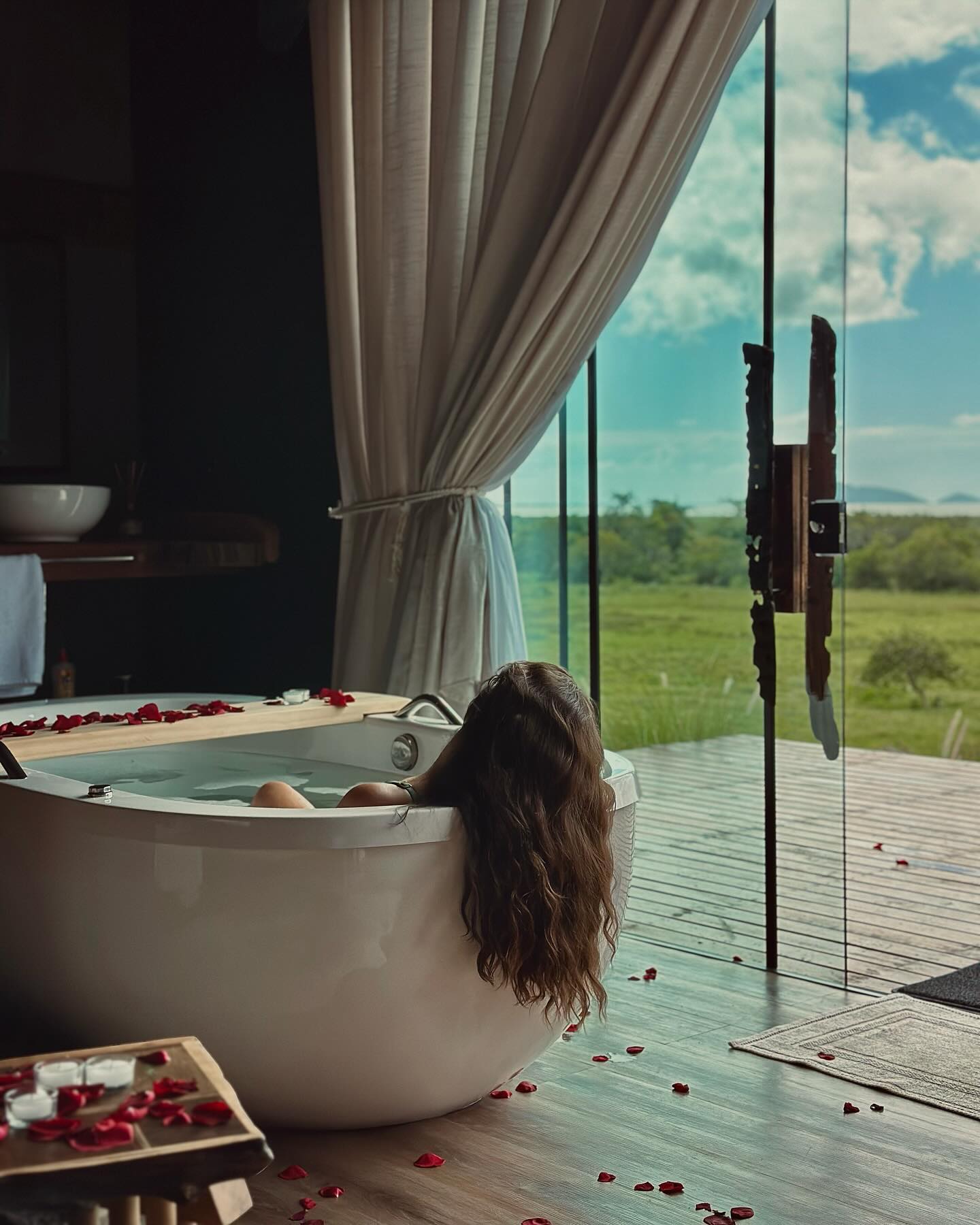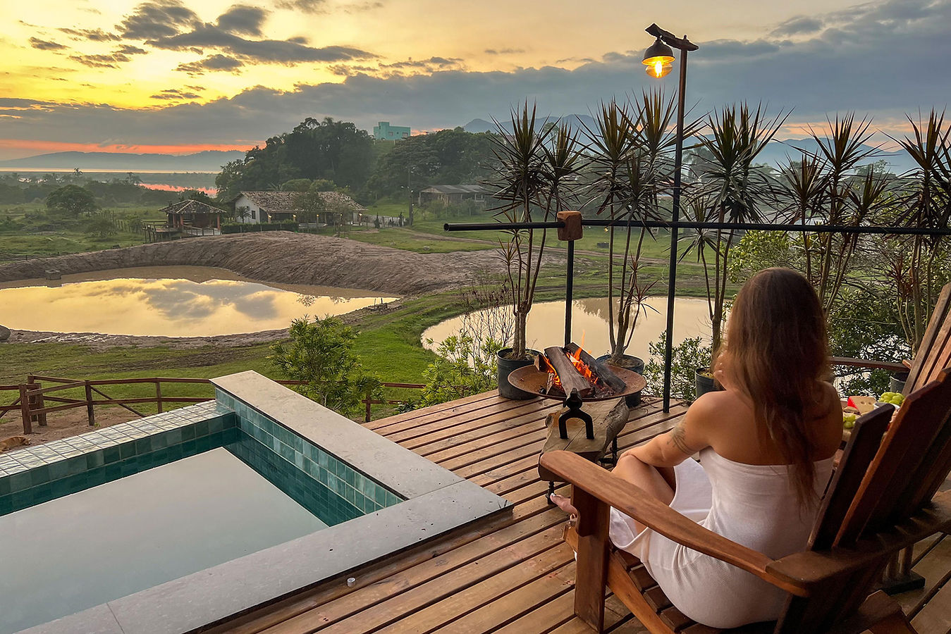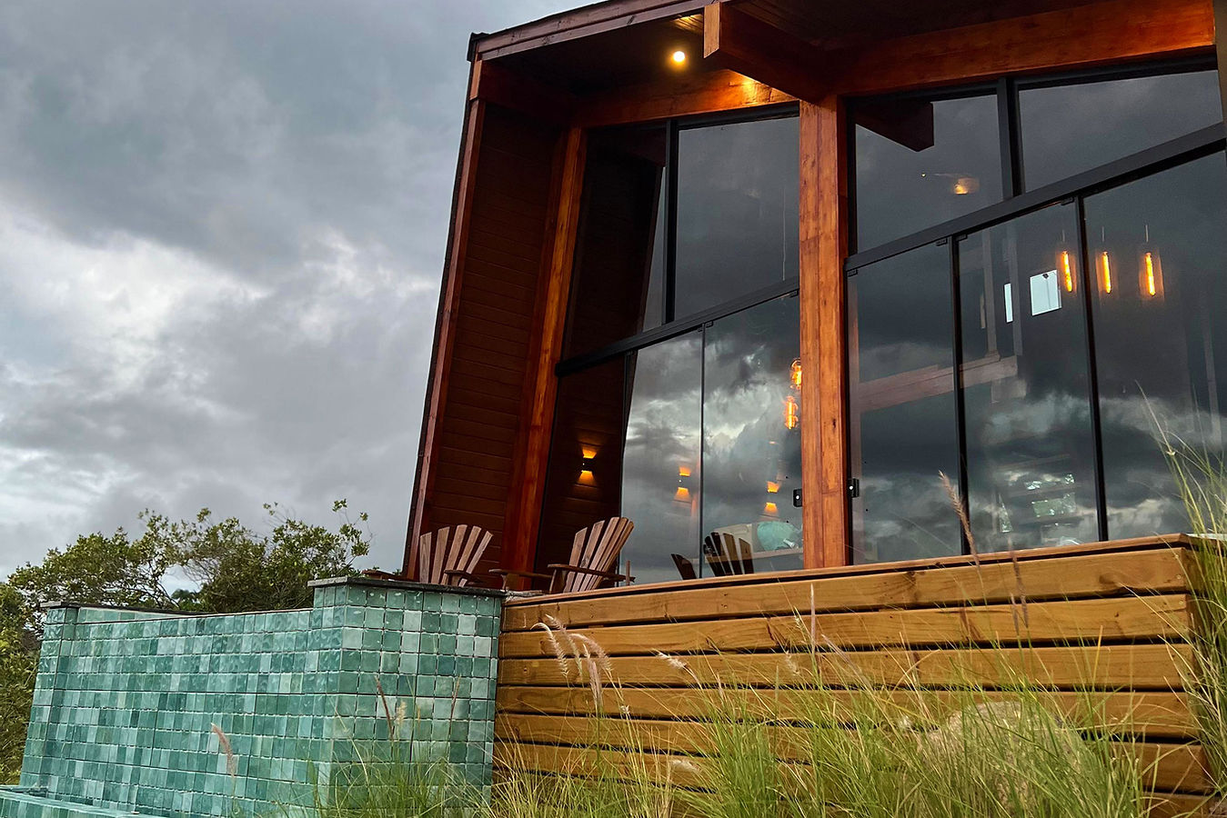 A Cabana Brasa é um misto de sofisticação e tranquilidade, com vista para a lagoa e o mar. Com 45m2, a cabana possui uma cama com vista no mezanino, automação, Alexa, cozinha completa, ducha externa, banheira de hidromassagem, lareira interna e externa, e piscina aquecida com borda infinita. Além disso, a cabana conta com TV Smart na sala e no quarto. Descubra essa hospedagem única!