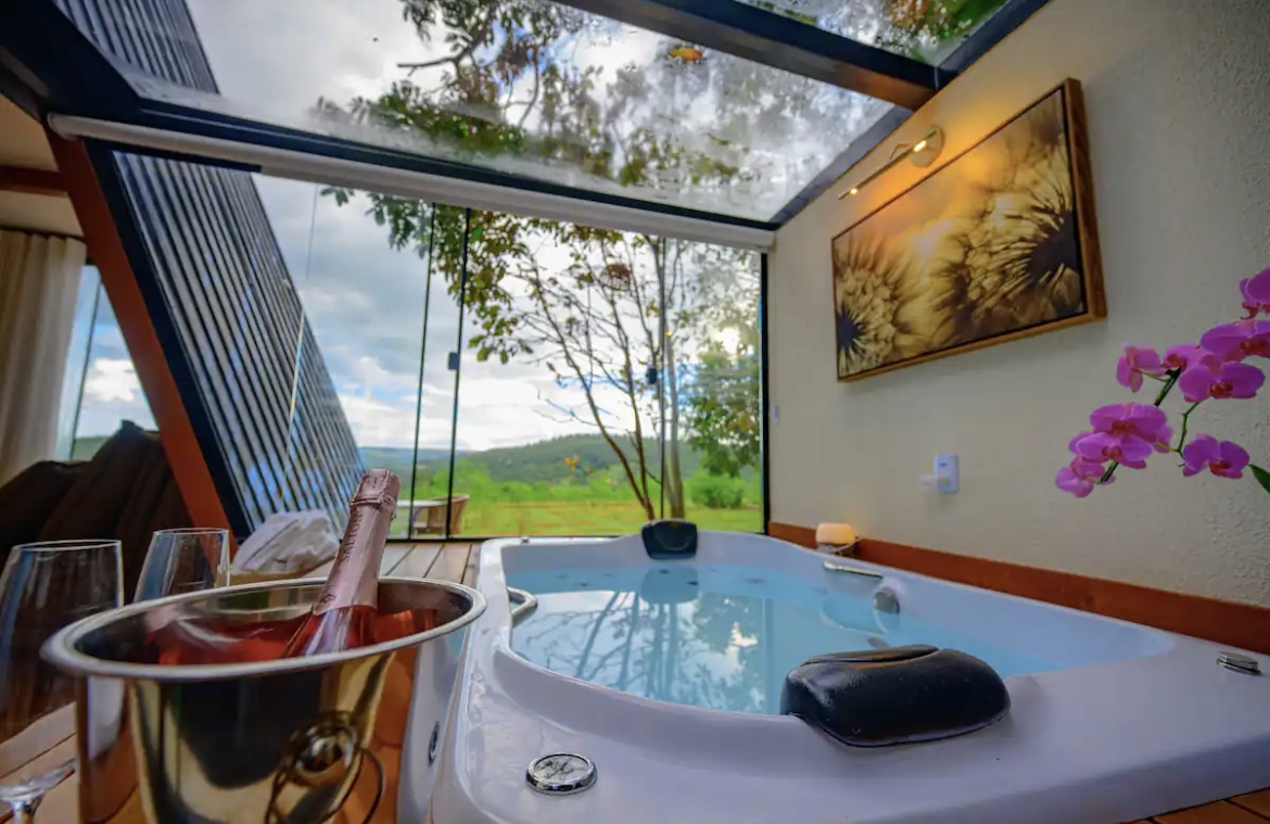 Além de todas essas comodidades, oferecem um delicioso café da manhã para começar bem o dia. Viva a experiência única da Cabana Zurique e descubra um refúgio de luxo e design no coração da natureza.