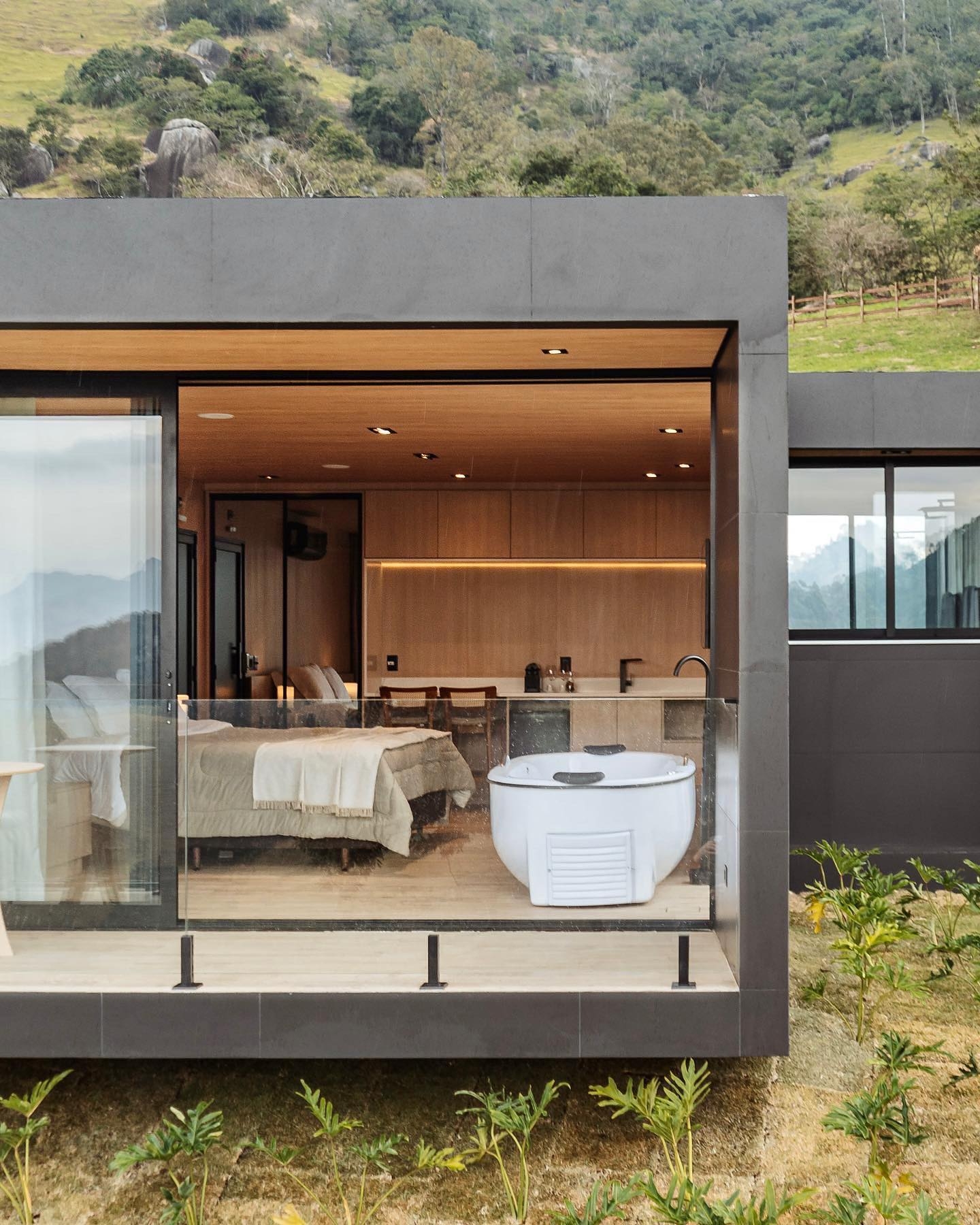 Aqui é possível passar alguns dias em chalés glamourosos, que misturam design moderno e sustentável com conforto e aconchego, em meio a um verdadeiro santuário da natureza.