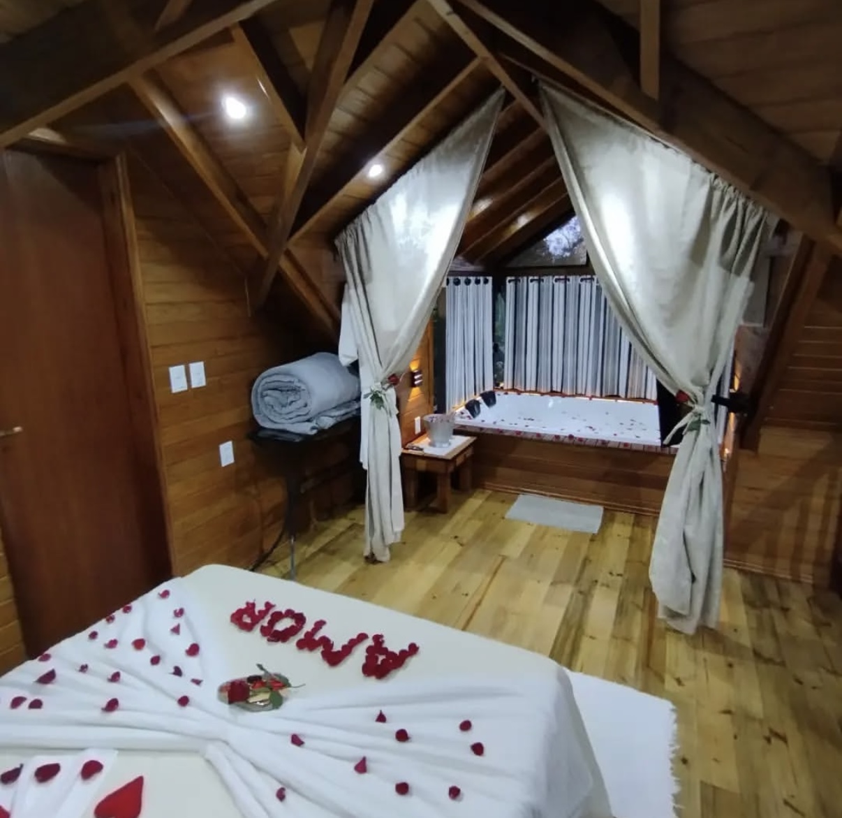 Com arquitetura que valoriza elementos rústicos e contemporâneos, os chalés proporcionam uma estadia que une charme, conforto e uma conexão genuína com a natureza. Cada ambiente foi cuidadosamente projetado, oferecendo lareira, cozinha completa e, em algumas unidades, banheira de hidromassagem, criando o cenário ideal para momentos de relaxamento, romantismo e bem-estar. Uma proposta que convida a desacelerar e viver experiências autênticas, cercado por paisagens de tirar o fôlego.