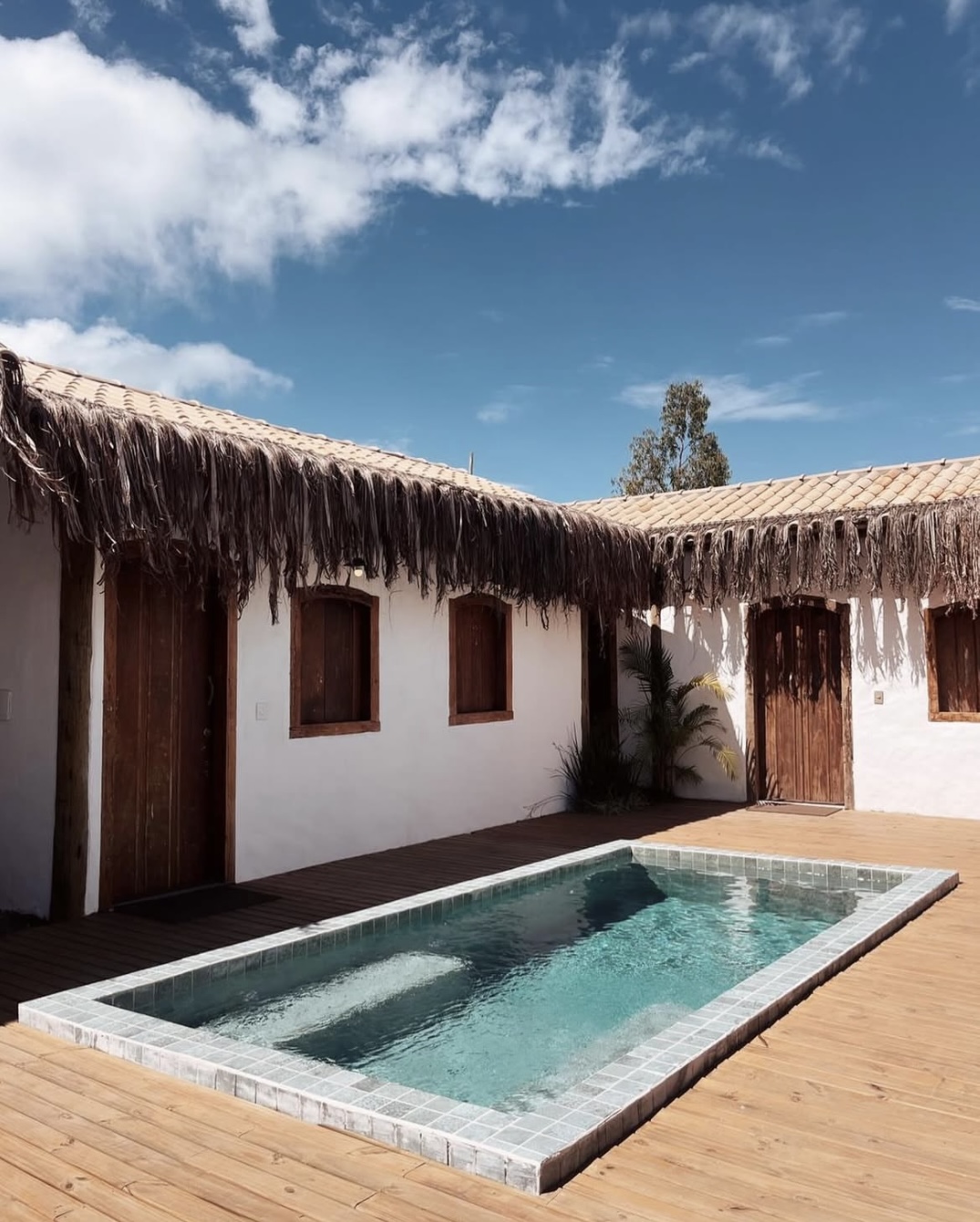Além da casa, a vila oferece 4 bangalôs independentes, todos com cozinha privativa e acesso a uma piscina compartilhada entre eles — perfeitos para quem busca praticidade, charme e aconchego.