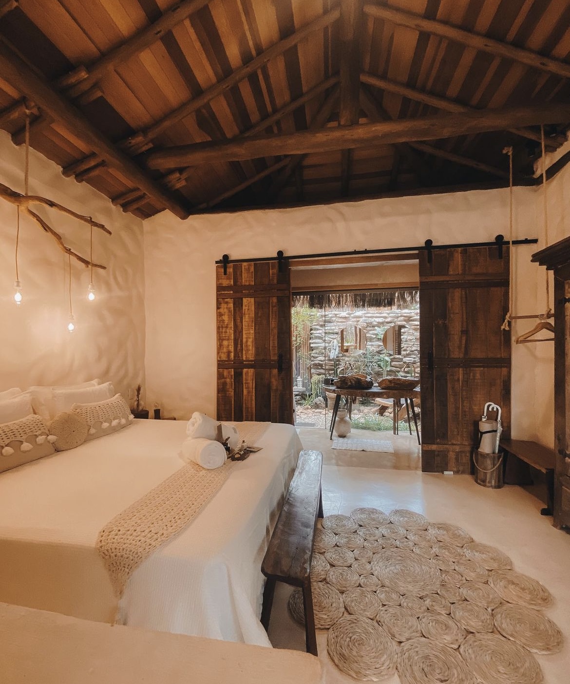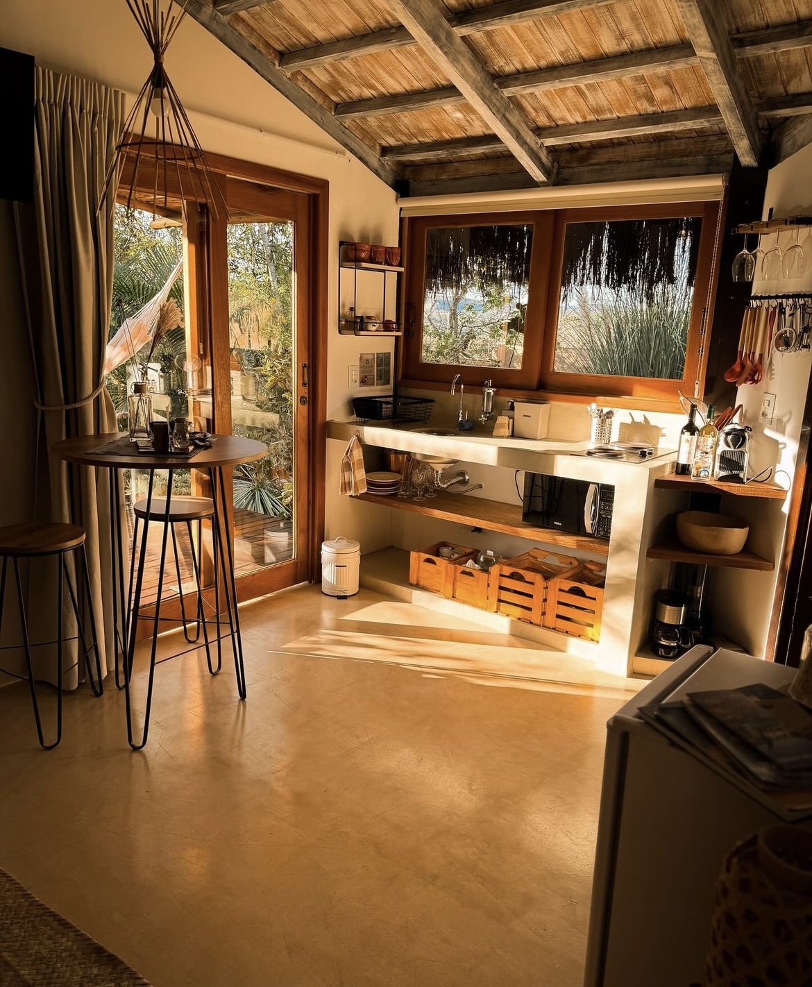 Uma vila charmosa e sustentável, que traz um novo conceito de hospedagem, inspirado no hotel casa, proporcionando uma estadia mais autêntica e afetiva, com casas butiques devidamente equipadas e serviço de hotel para maior comodidade. Imersa e inspirada no Cerrado brasileiro, a Vila tem em sua composição casas conceito e exóticas, com 70m2, bem distribuídos, com cozinha gourmet, deck com vista para o jardim, e os mais procurados banheiros ao ar livre, com banheira de imersão esculpida em pedra natural. O café da manhã é estilo caseiro, reforçado, saudável com iguarias do cerrado e abrange todos os tipos de restrições alimentares. As casas trazem na arquitetura e design diferentes detalhes e texturas, resgatando algumas técnicas milenares inspiradas na arquitetura vernacular como o pau a pique, por exemplo, revisitando a expressão cultural dos povos nativos, os Kalungas, que construíam as próprias casas com barro e bambu. Também temos trabalhos handmades (feitos à mão), assinados por escultores, artesãos locais. Através de experiências sensoriais que afloram os cinco sentidos e proporcionam maior alinhamento entre o corpo e mente, a vila conta com SPA Zen, o templo Ser com práticas e vivências, como terapias holísticas e meditações. Bicicletário, roda do fogo, horta orgânica e estação de tratamento de resíduos, também integram nas áreas comuns.