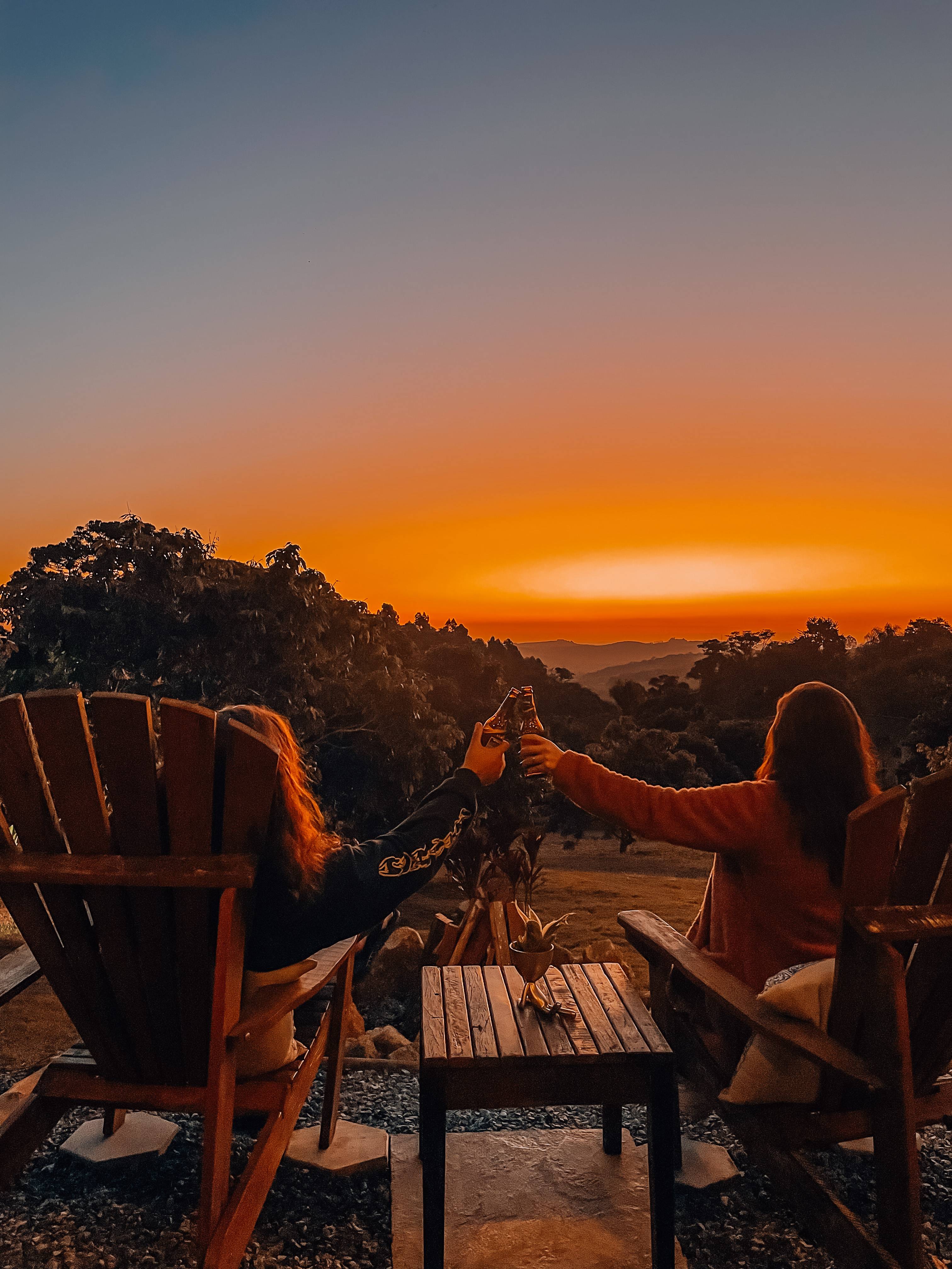 Uma rede suspensa para aqueles que apreciam contemplar o pôr do sol e uma bela fogueira para aquecer a noite.