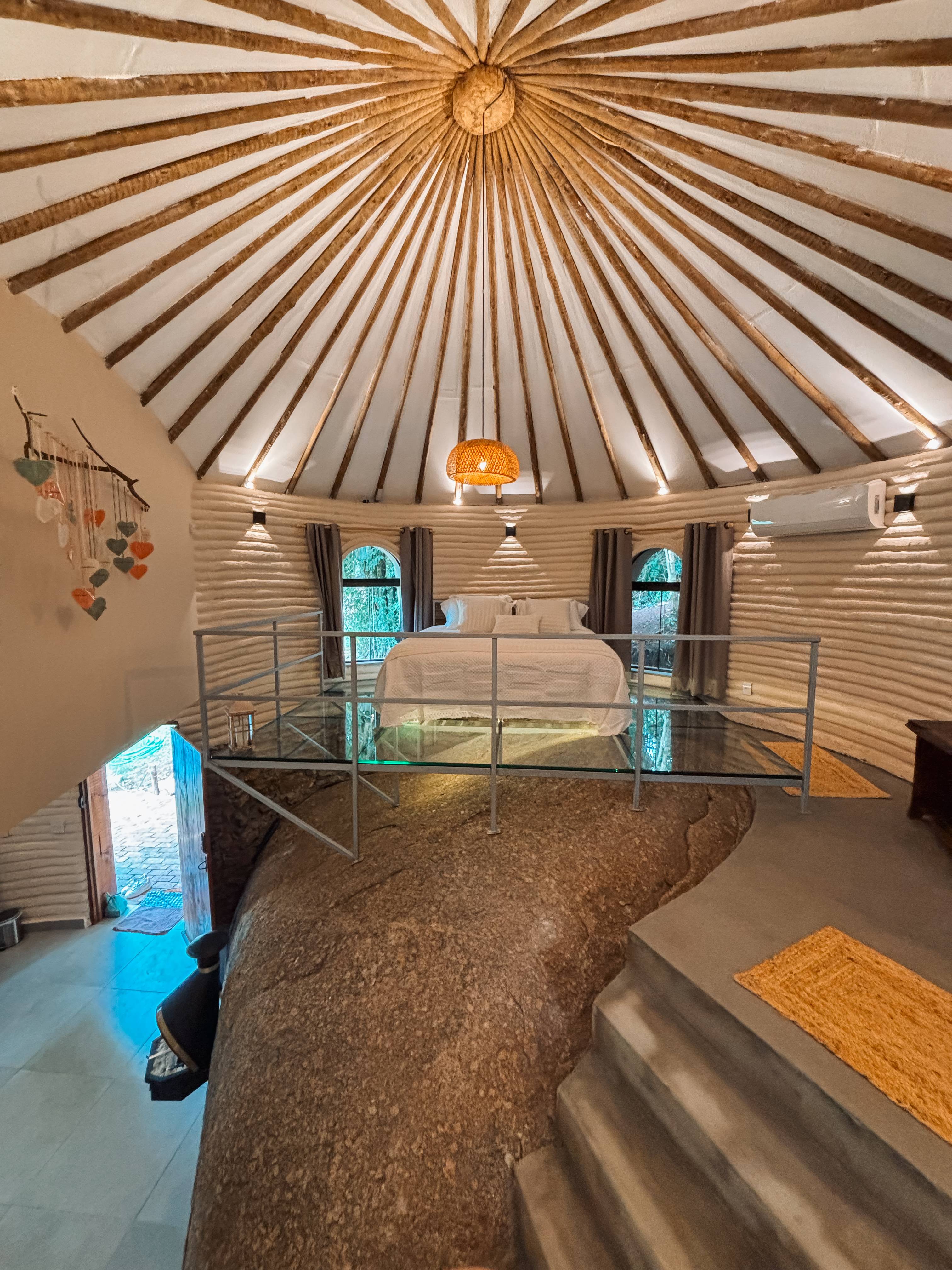 Suíte Hiperadobe: Bem-vindo à Suite Hiperadobe da Villa Retro, uma experiência de hospedagem que desafia os limites do convencional. Ao adentrar esta suíte única, os sentidos são imediatamente envolvidos por uma atmosfera mágica e hipnotizante. Inspirada na técnica ancestral do hiperadobe, cada detalhe foi meticulosamente projetado para proporcionar uma experiência verdadeiramente única e memorável. Seja para uma escapada romântica, uma celebração especial ou simplesmente uma jornada em busca do extraordinário, a Suite Hiperadobe da Villa Retro oferece uma experiência que transcende as expectativas e convida os hóspedes a explorar o inexplorado.