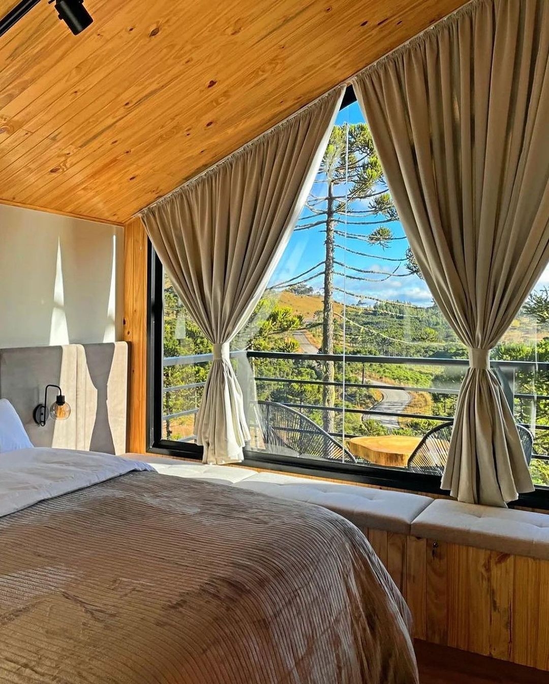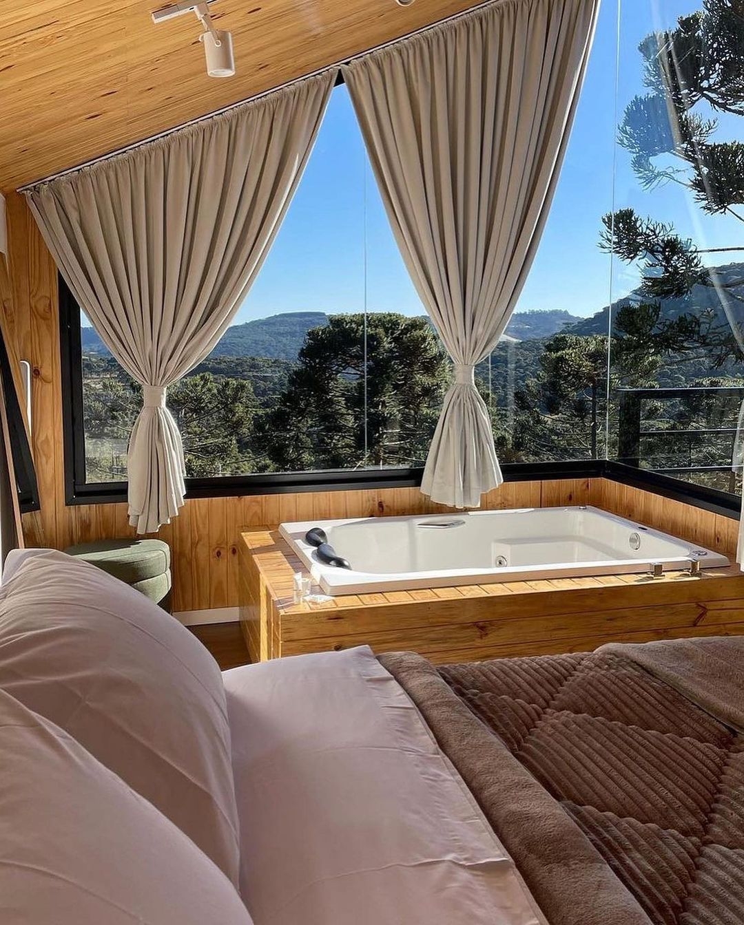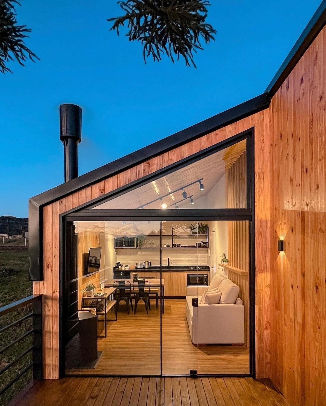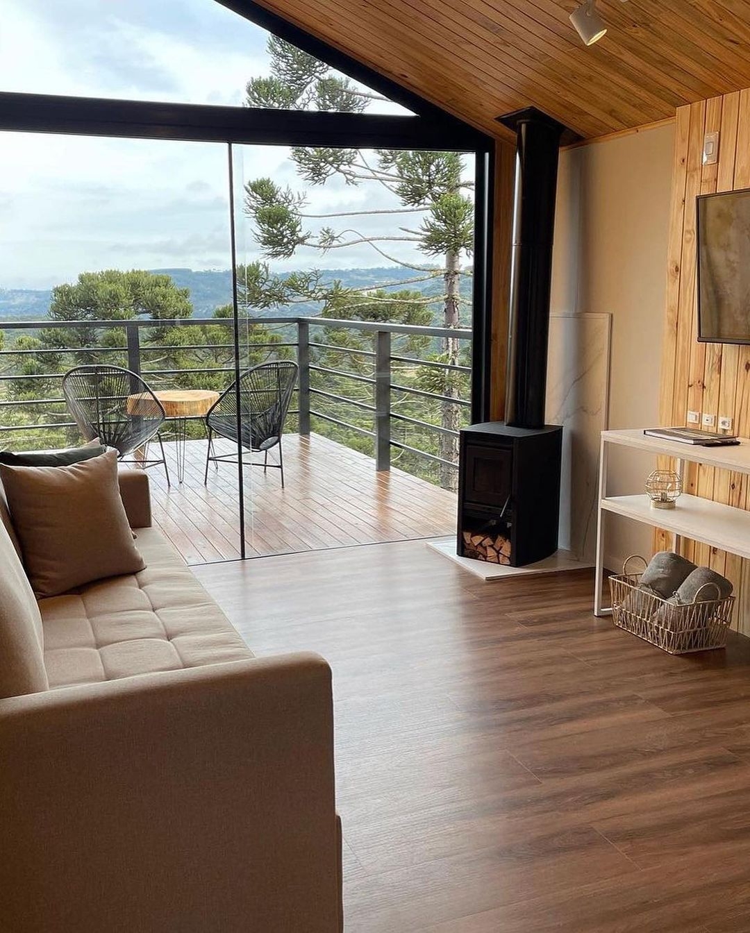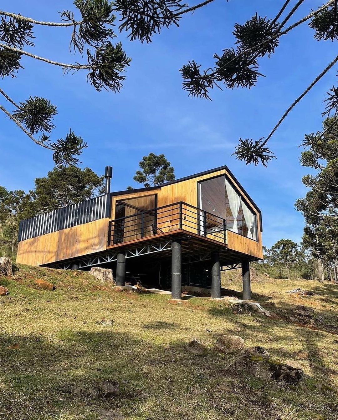 Local romântico, cheio de estilo e com muito conforto. São duas cabanas modernas e imponentes, em meio à natureza.