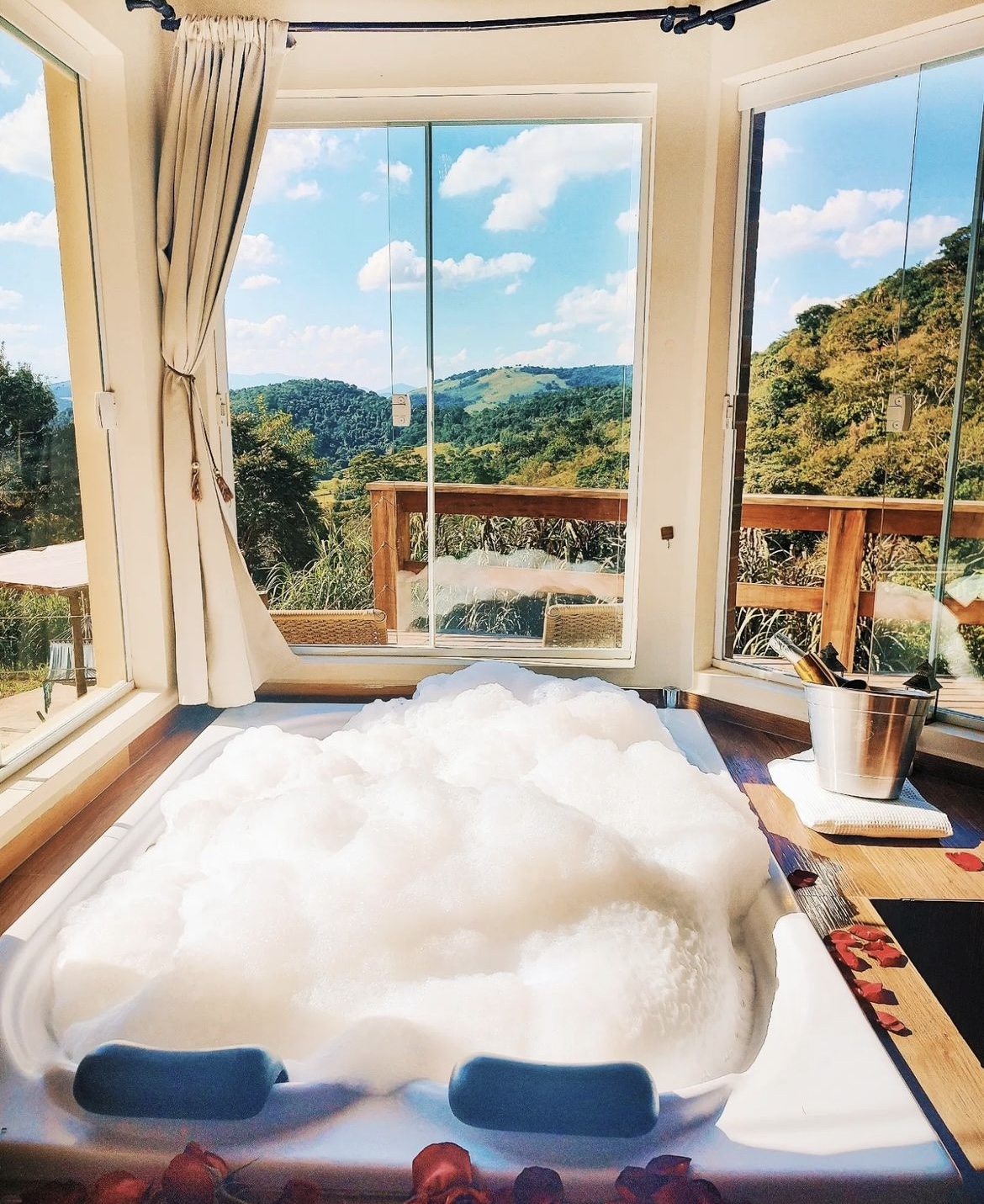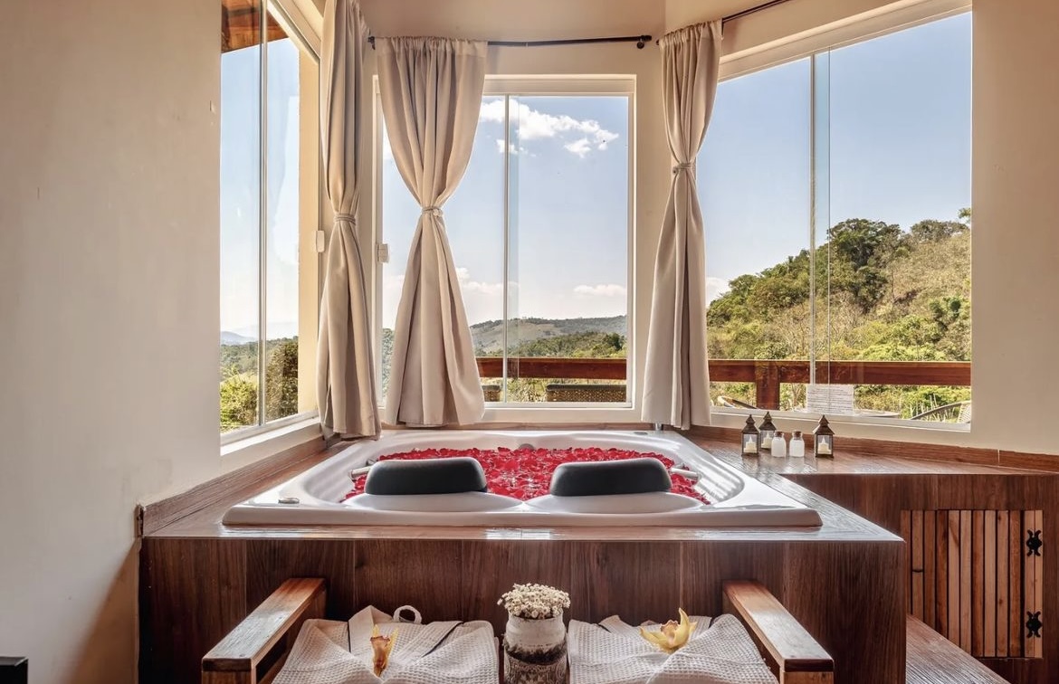 Ar condicionado Secador de cabelo TV a cabo / Smart TV Jacuzzi / Ofurô / Banheira Coberta Frigobar Lareira Máquina de Café Enxoval de Luxo (+ Roupão e Pantufa) Sauna Cozinha Estação de trabalho (mesa e cadeira) Piscina Aquecida ou climatizada Borda Infinita Coberta