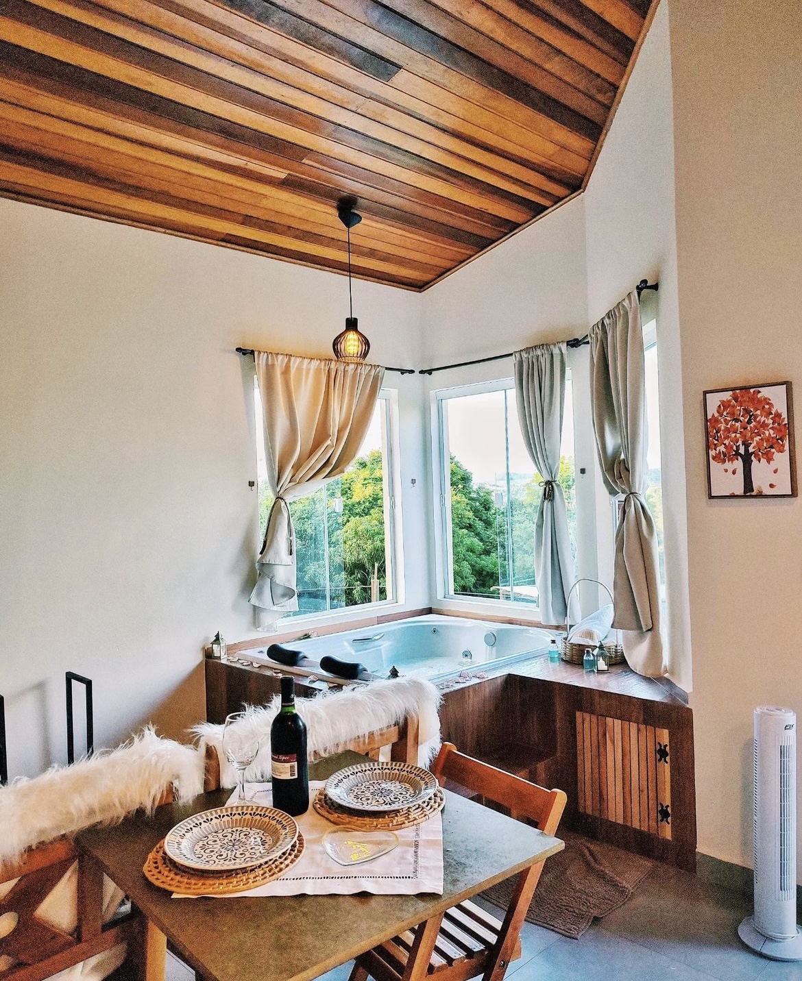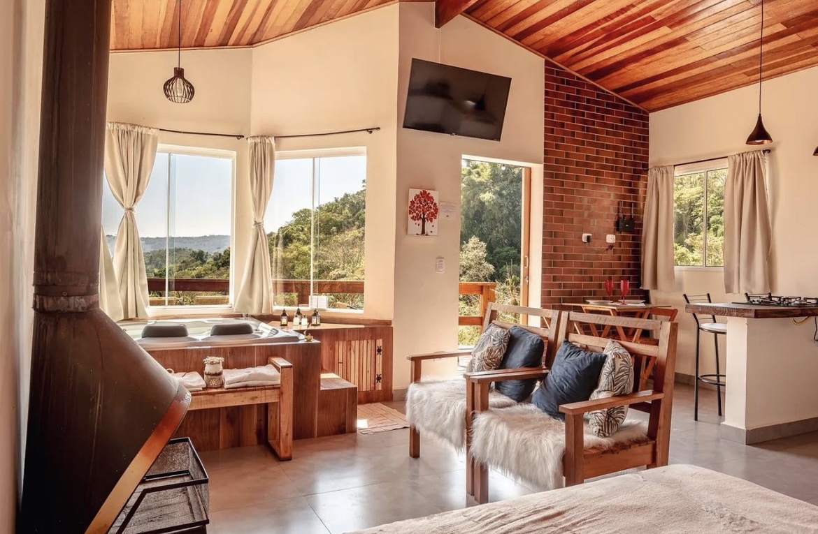 Você jamais vai esquecer da estadia neste chalé romântico e marcante. Existe algo melhor do que viver momentos a dois na paz da natureza? A Vivenda Apuã é equipada com hidro com aquecimento, cozinha, lareira, churrasqueira e uma cama de casal para acomodar todo o amor do mundo. Há uma trilha para uma vista incrível e um pergolado para apreciar a paisagem. A área privativa conta com lareira, cozinha, deck com vista panorâmica para admirar o nascer do sol junto da pessoa amada, ouvir o canto dos pássaros em contato com a natureza, com total privacidade e segurança.